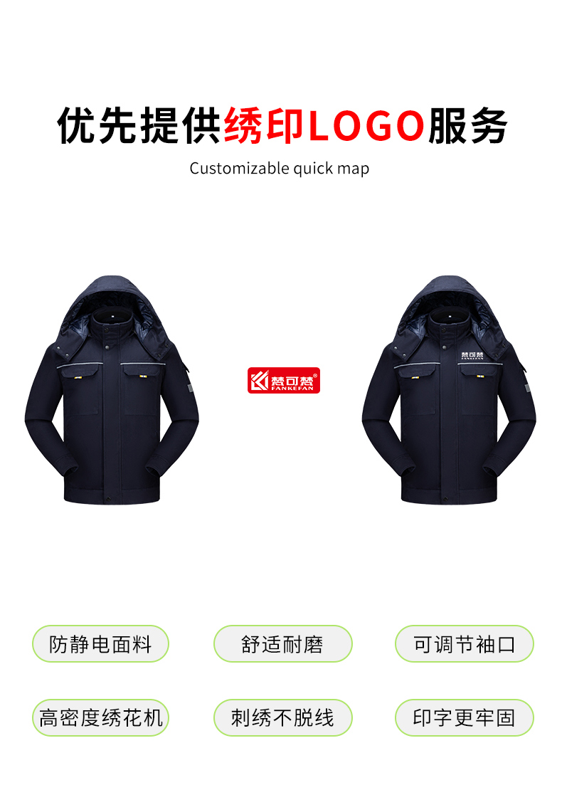 冬季棉袄劳保工作服棉服加厚反光条上衣仓库搬运汽修防寒服可拆卸