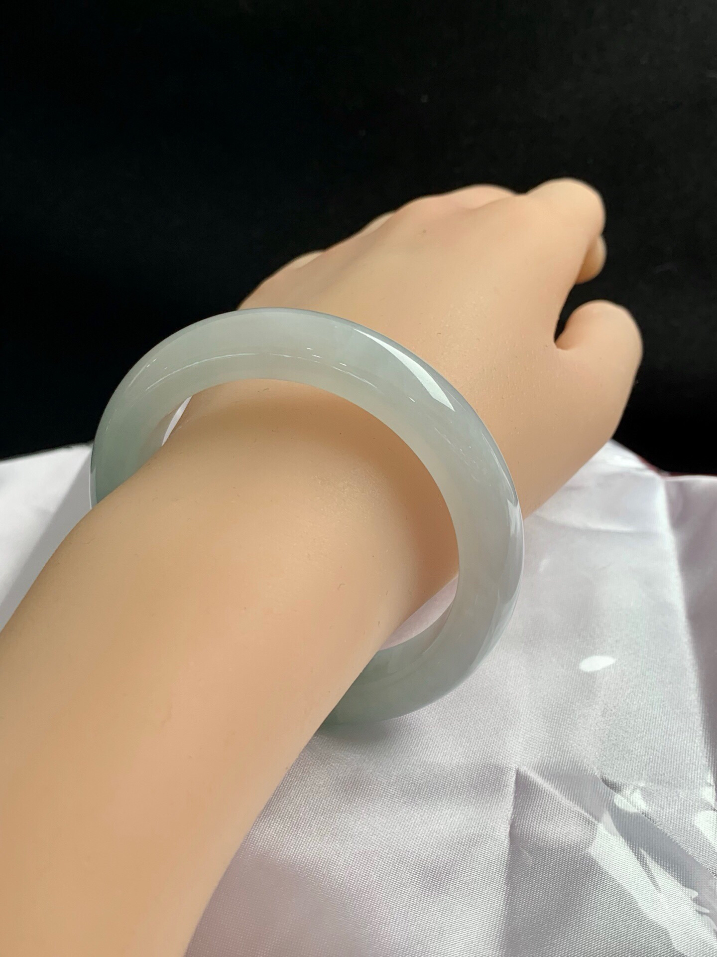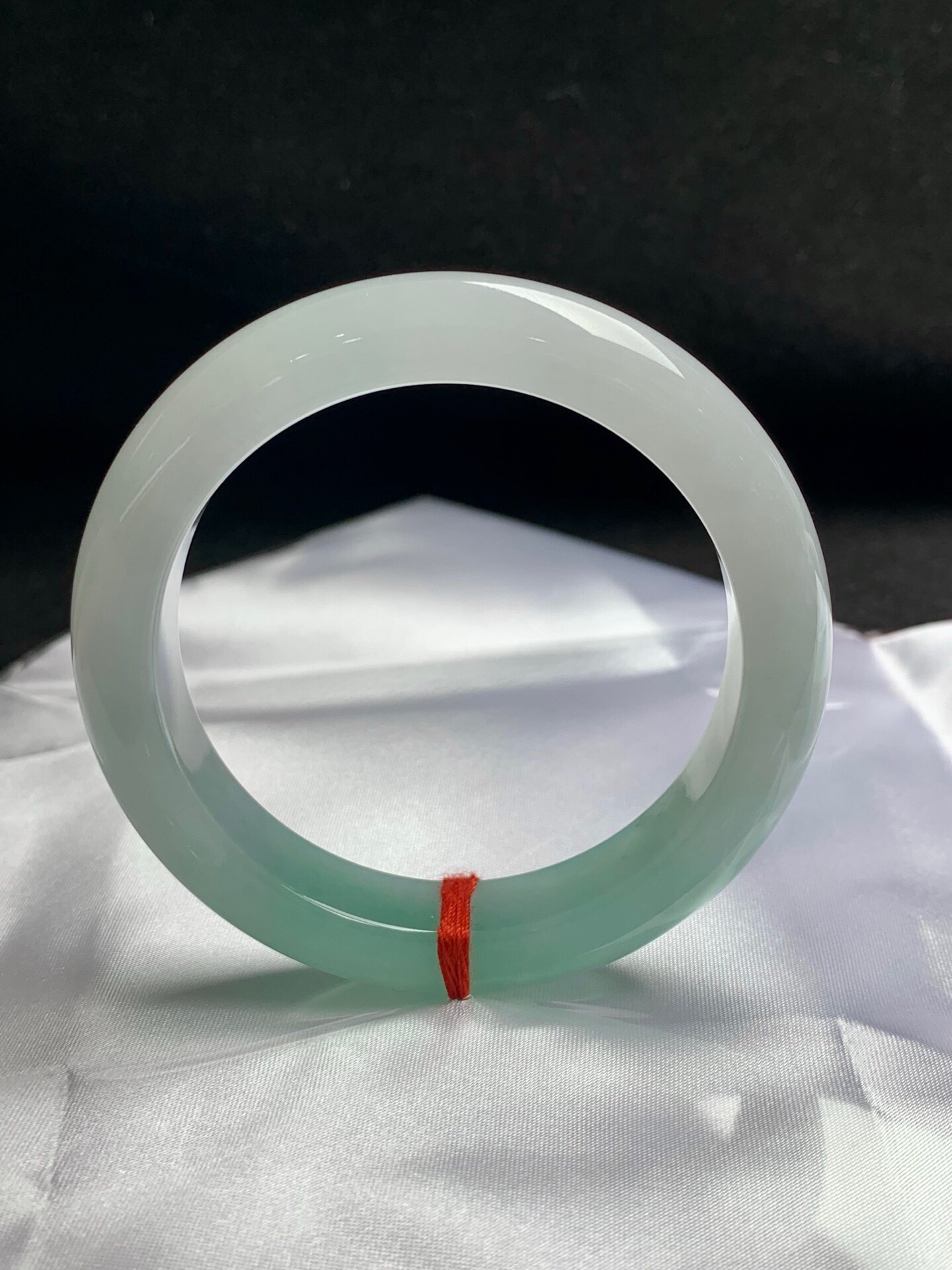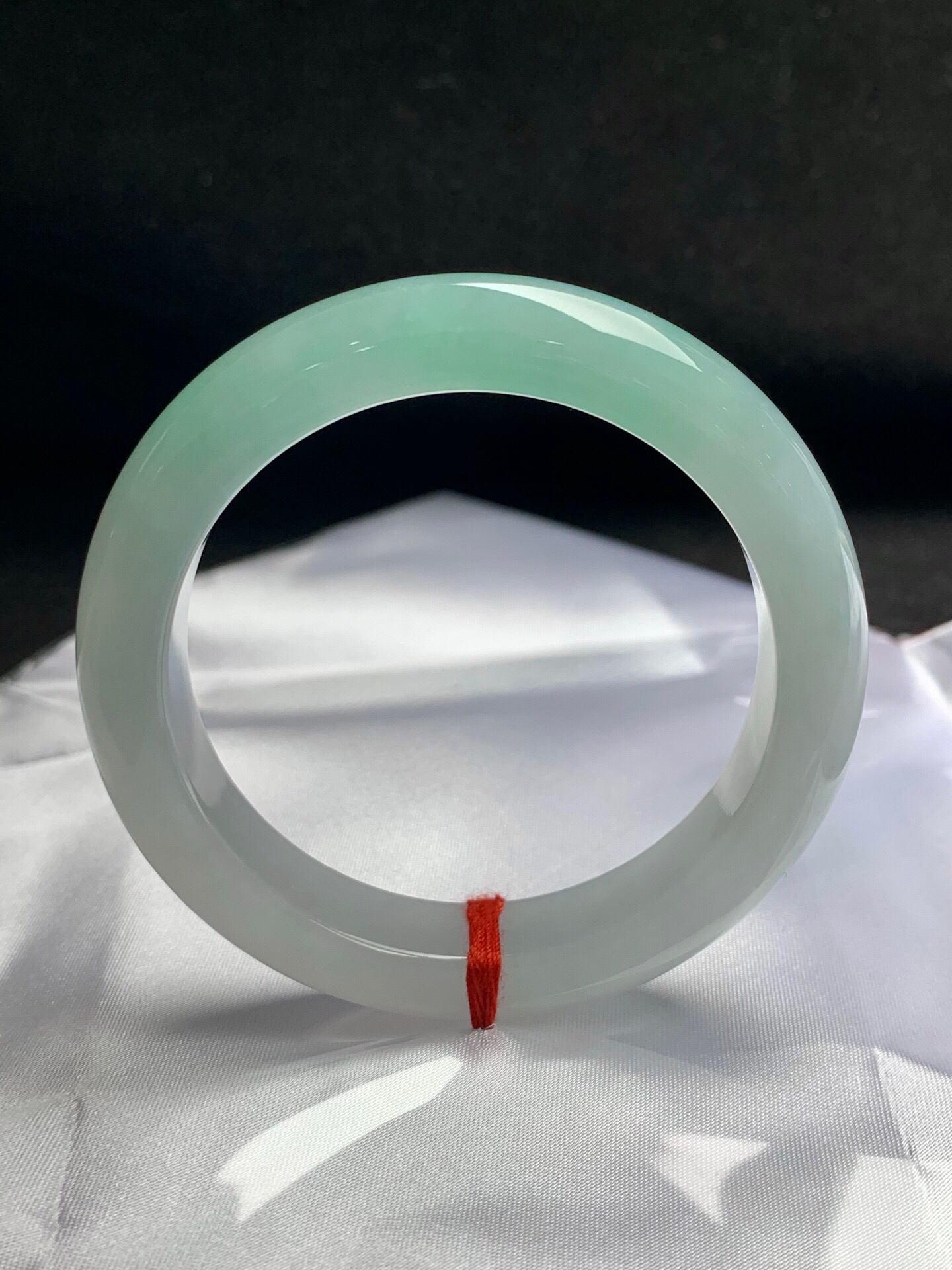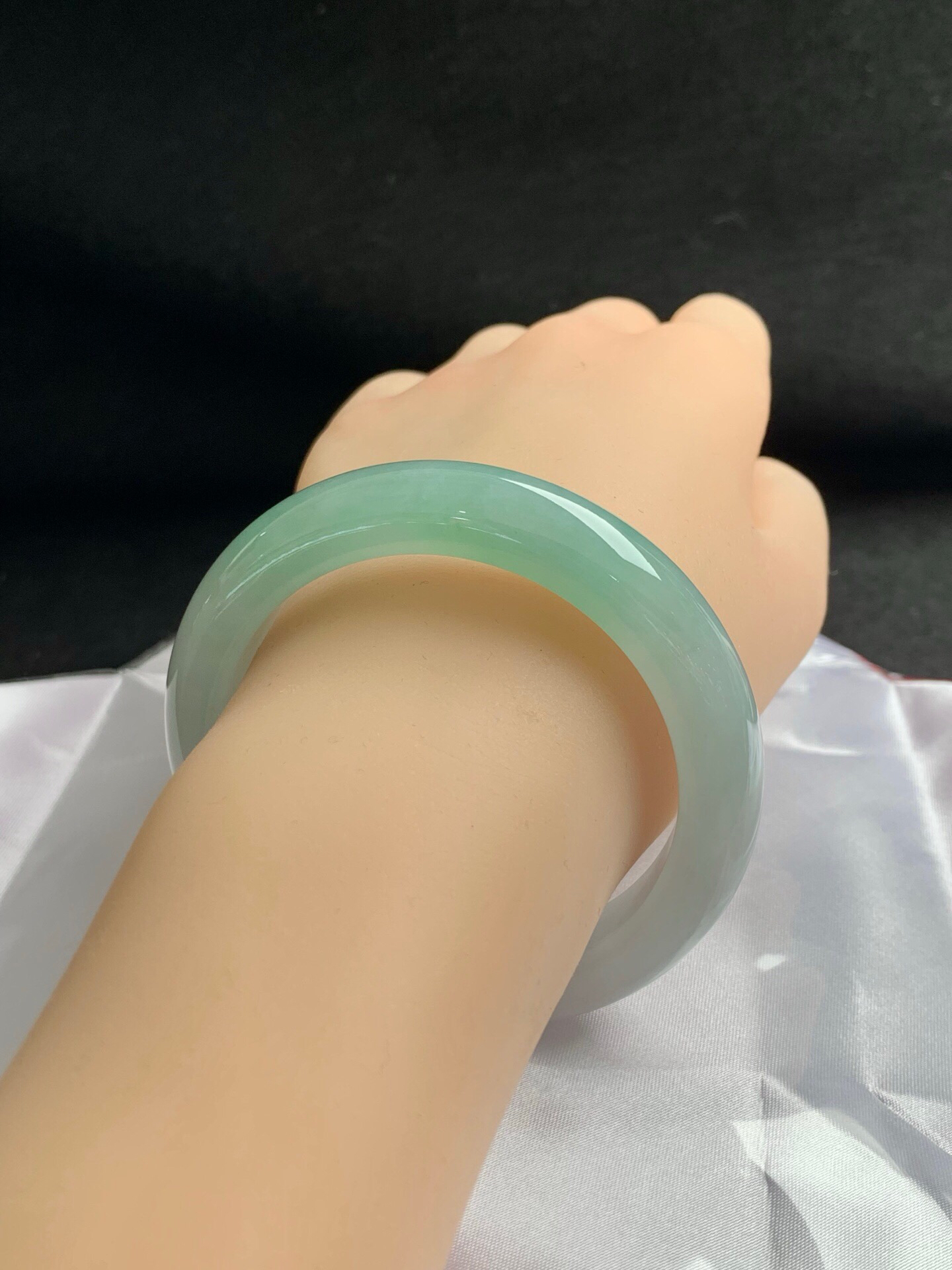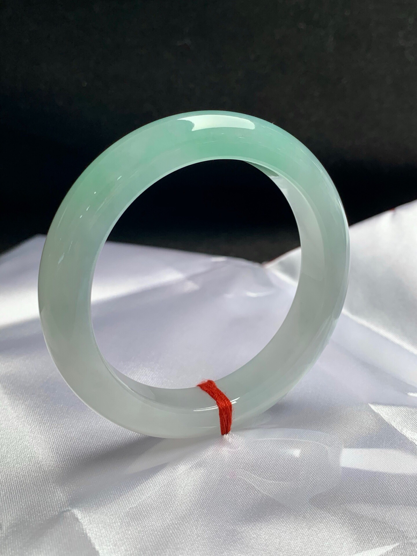 620257,54.5圈口,冰晴半山水正圈平安镯,半截甜绿色,半截白底,种水好,冰润细腻,完美无裂,尺寸:54.5-12.3-9.1,超值价💰31500 #优石客珠宝#香玉荟萃