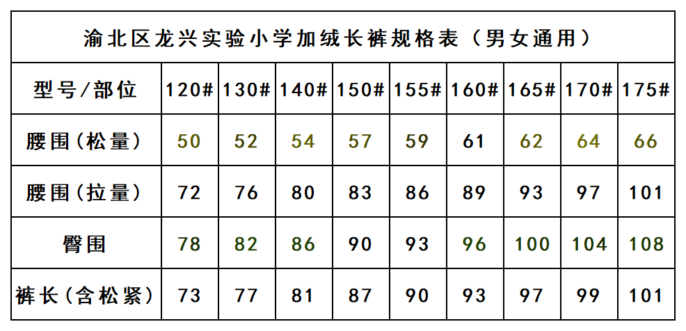 渝北区龙兴实验小学—加绒长裤