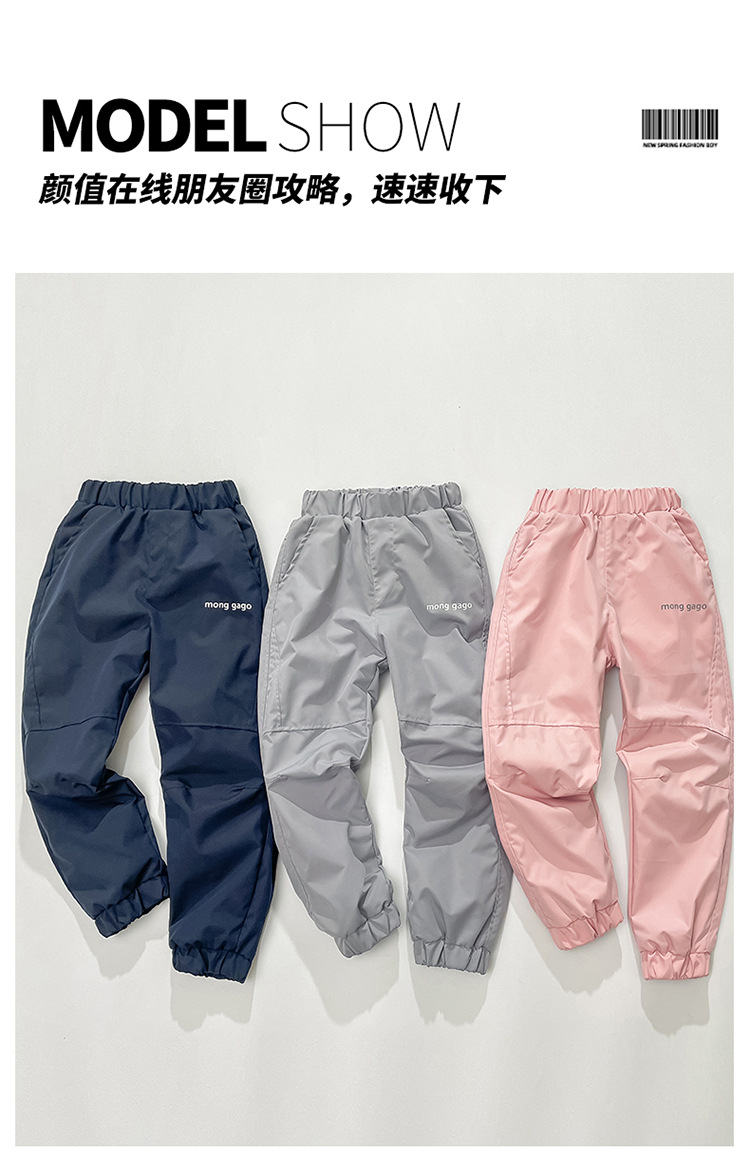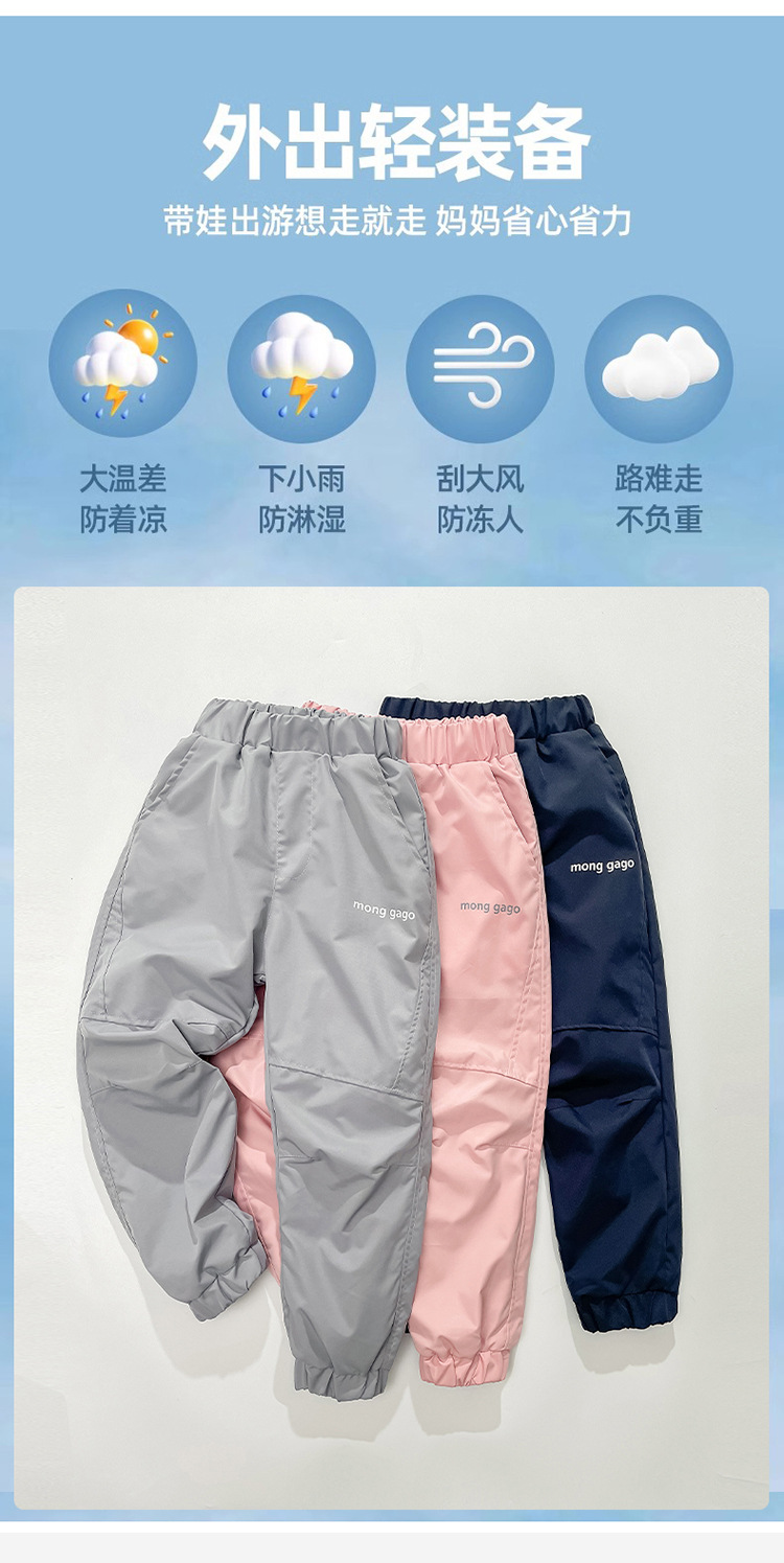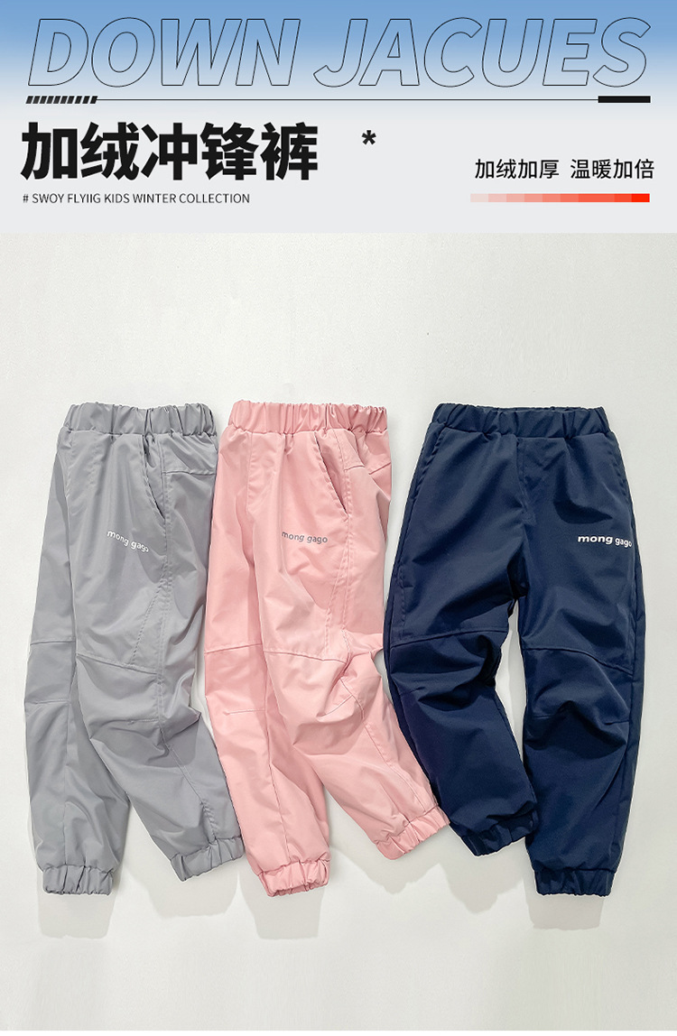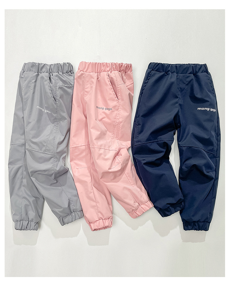 儿童冲锋裤防风防水加绒女宝中大童春秋裤子加绒秋冬保暖滑雪裤潮💕