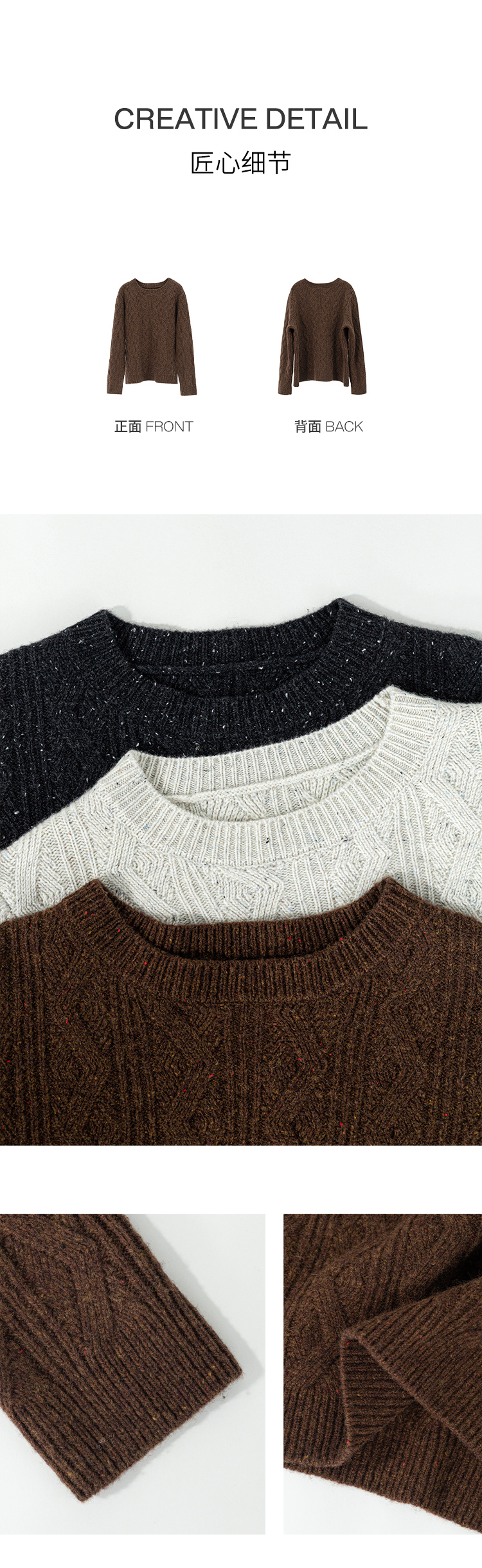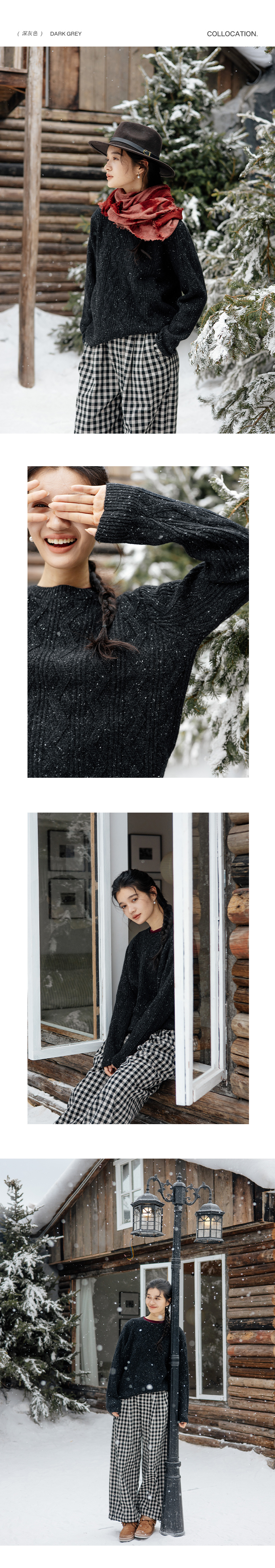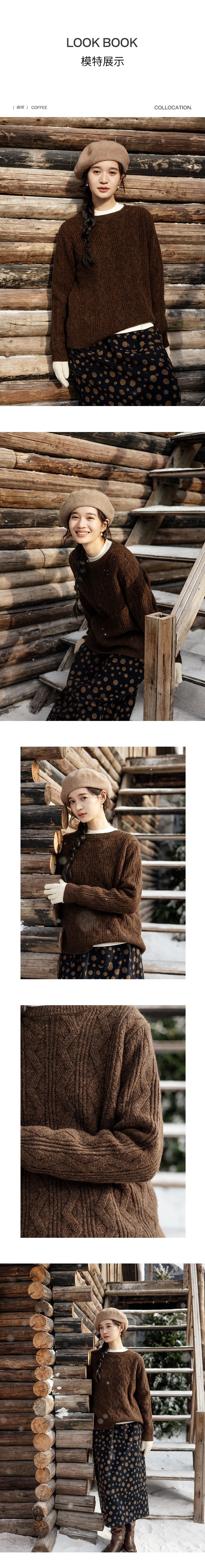 绽放893朵/雪原毛衣秋冬优质美利奴羊毛三色绞花彩点圆领套头上衣
