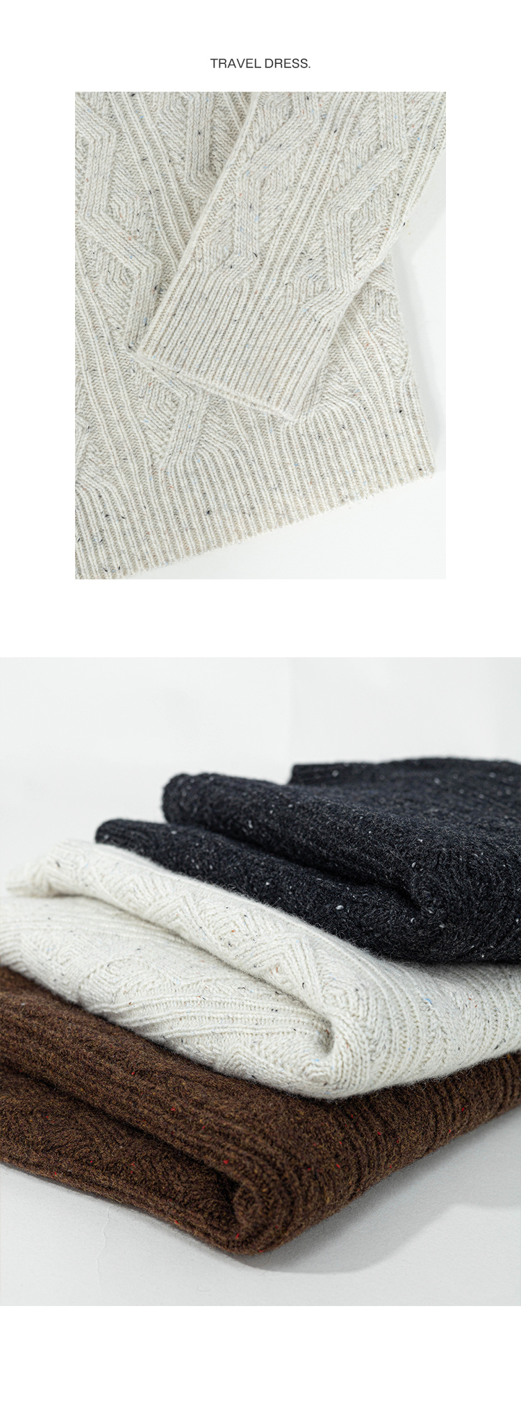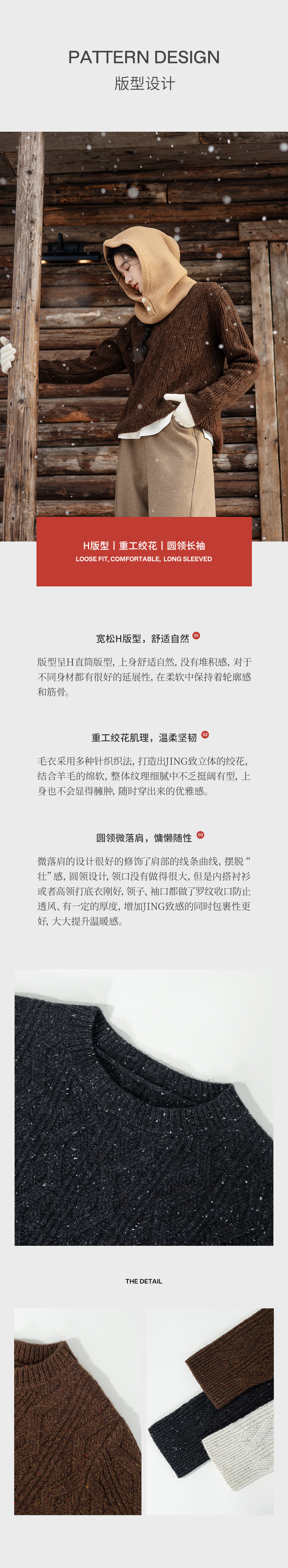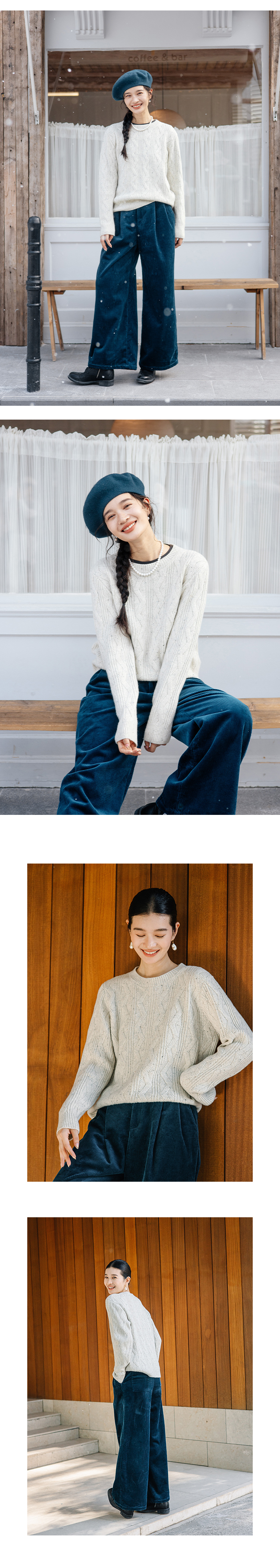 绽放893朵/雪原毛衣秋冬优质美利奴羊毛三色绞花彩点圆领套头上衣