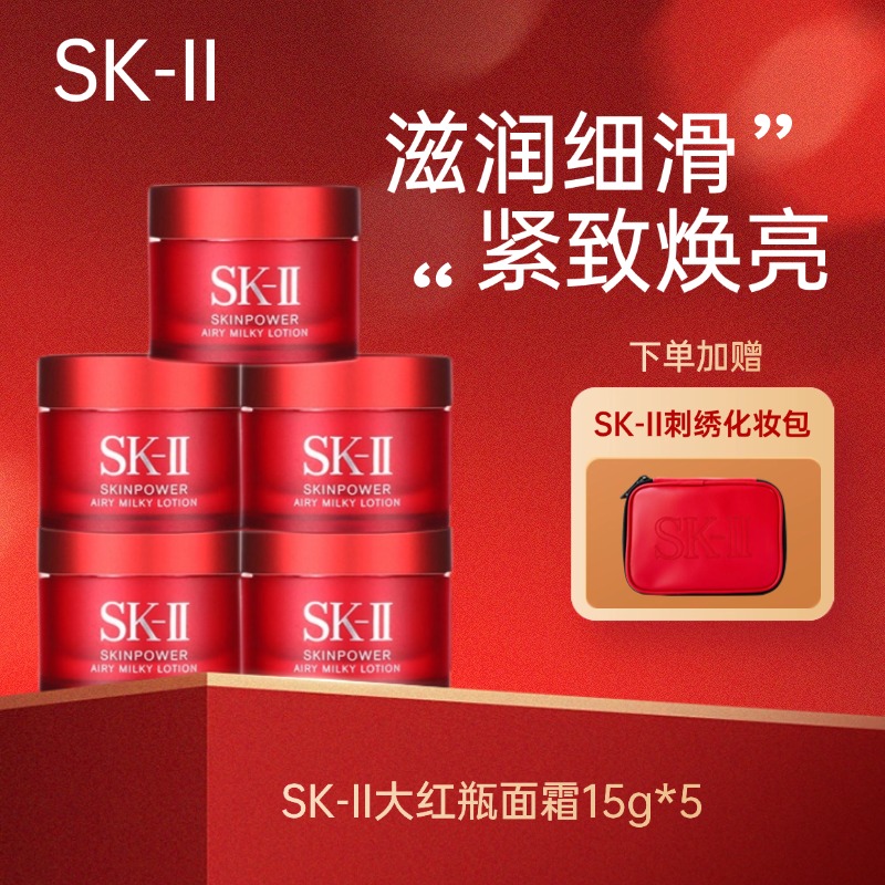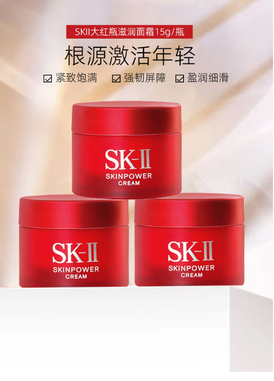 【限时特惠】SK-II赋能焕彩精华霜大红瓶面霜15g小样3(下单加赠SK-II化妆包1个)