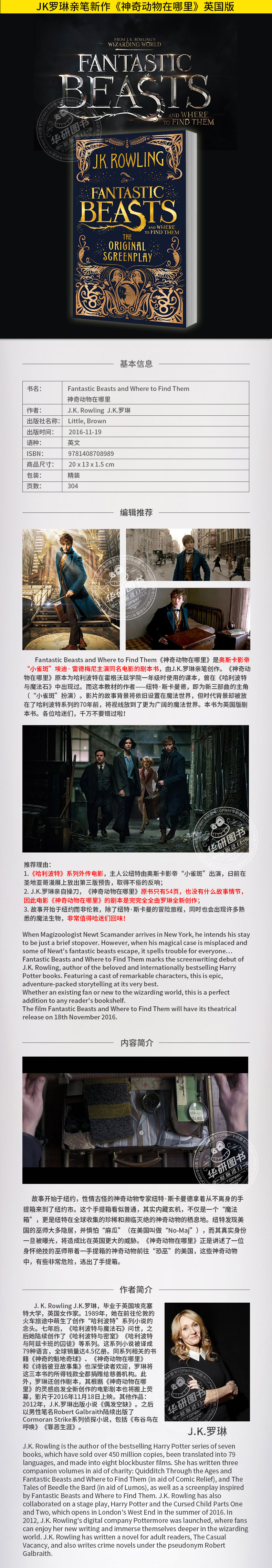 华研原版 进口英文剧本 哈利波特神奇动物在哪里+英版哈利波特8 哈利波特与被诅咒的孩子英文版 JK 罗琳