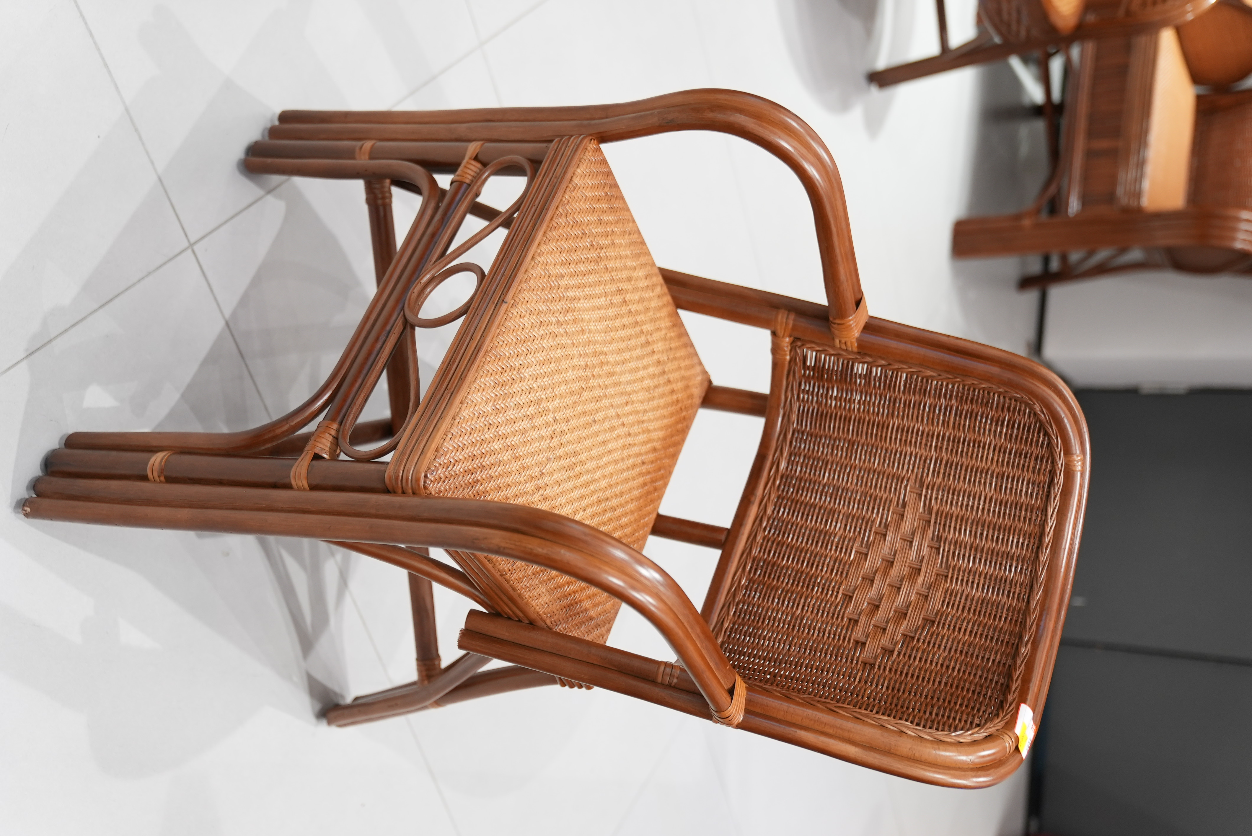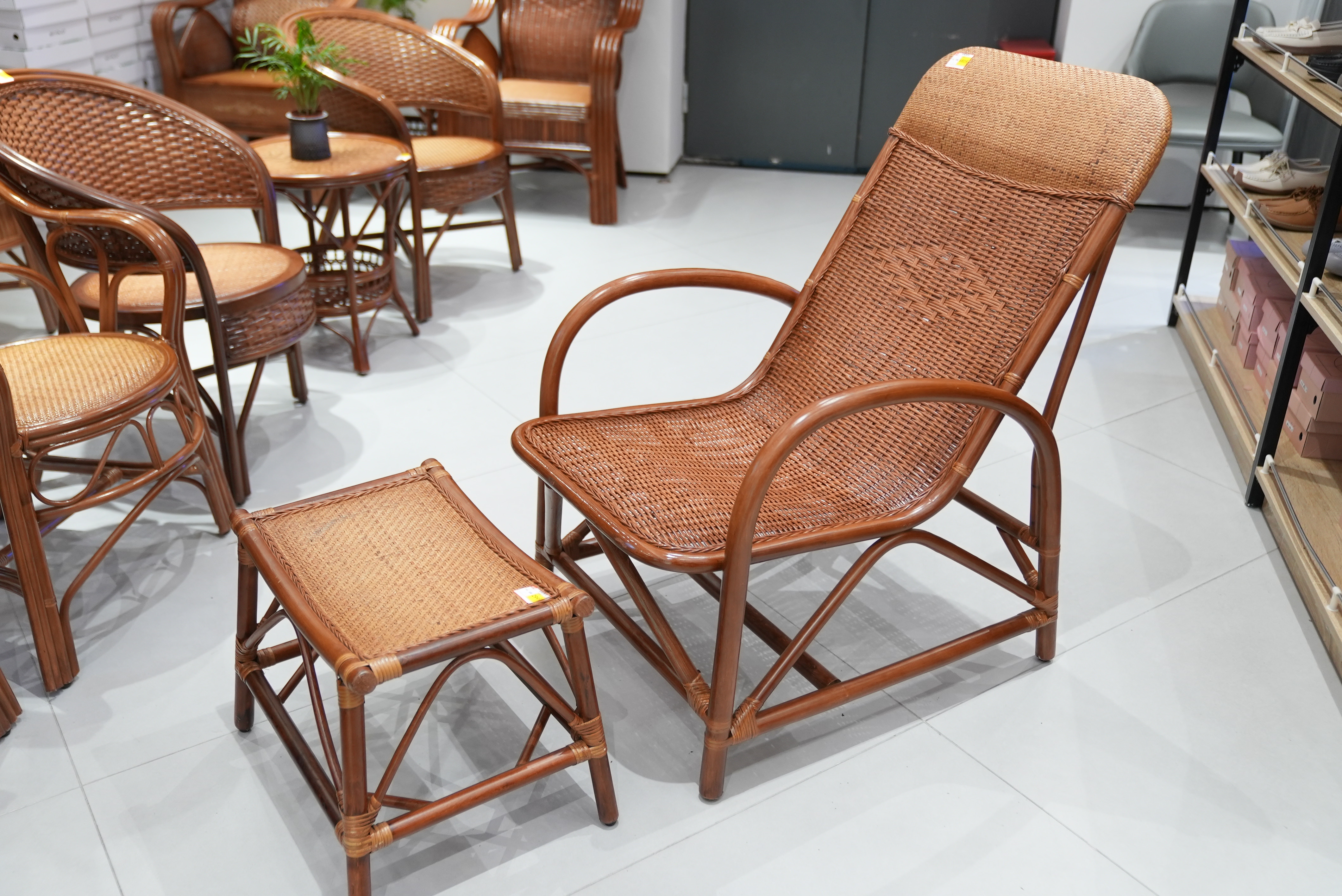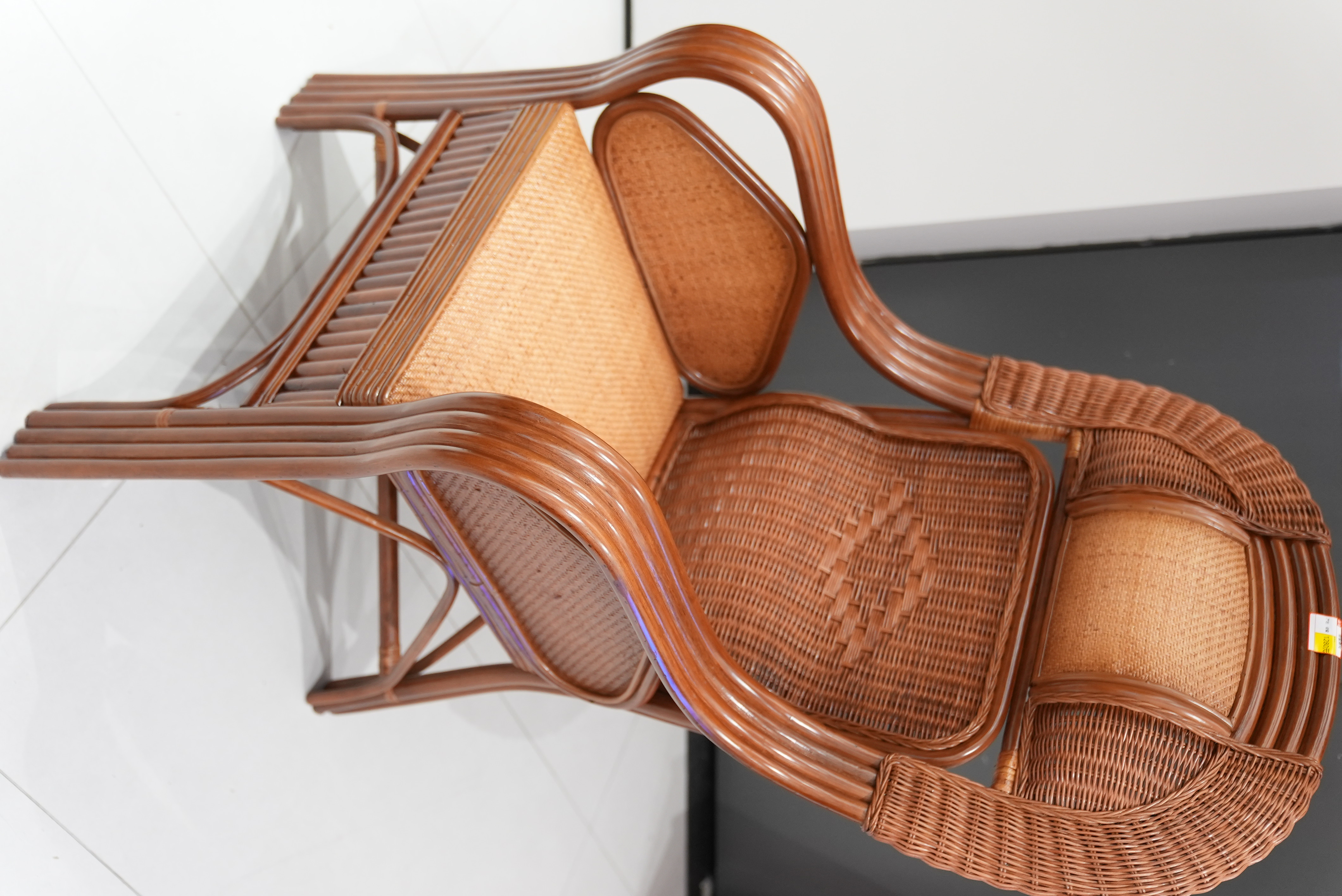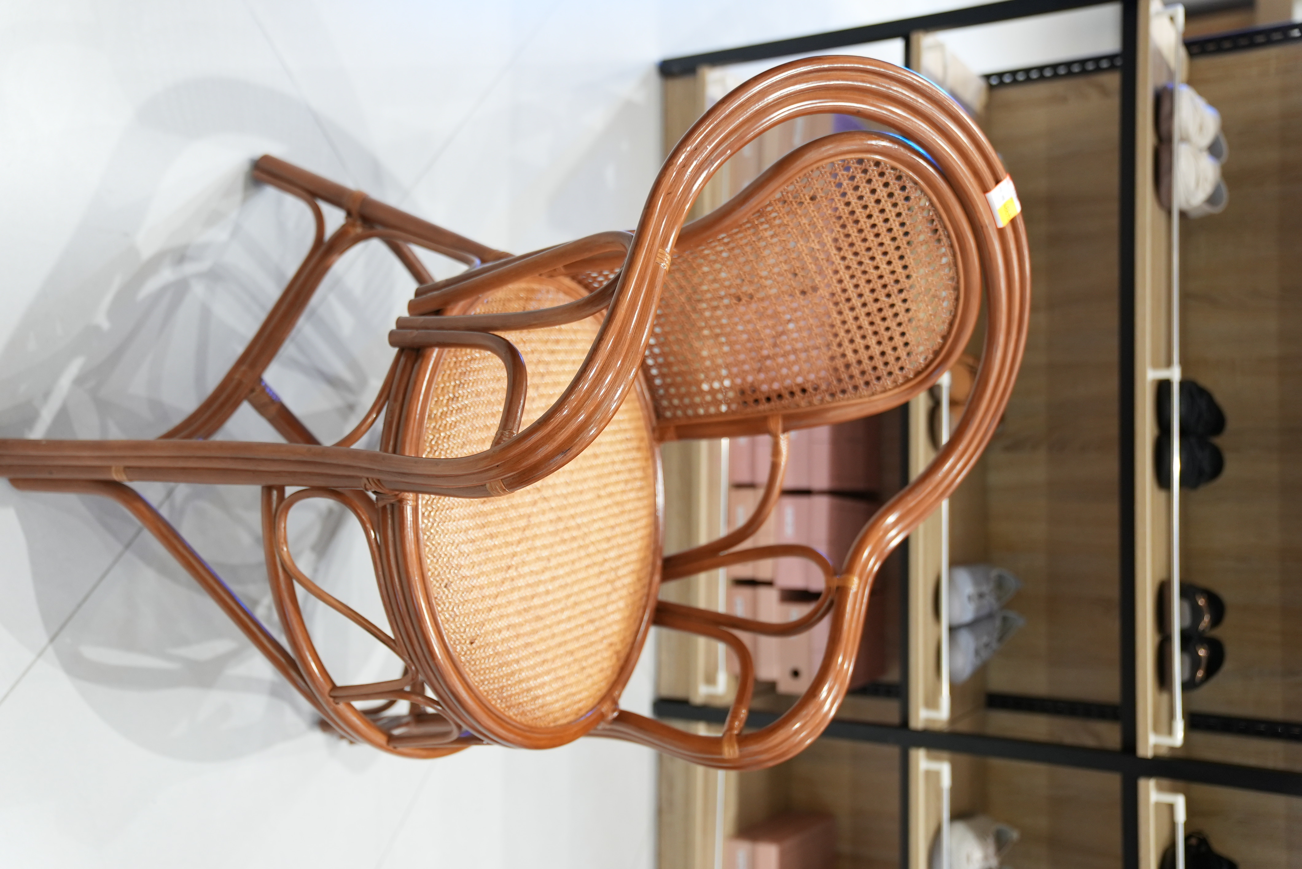 藤条都是实心的,多做底部支撑和框架;藤皮劈成细条后,编成座垫或靠位,透气又轻盈。即使是最重的摇摇椅,我两手也能轻松地拿起和放下。
