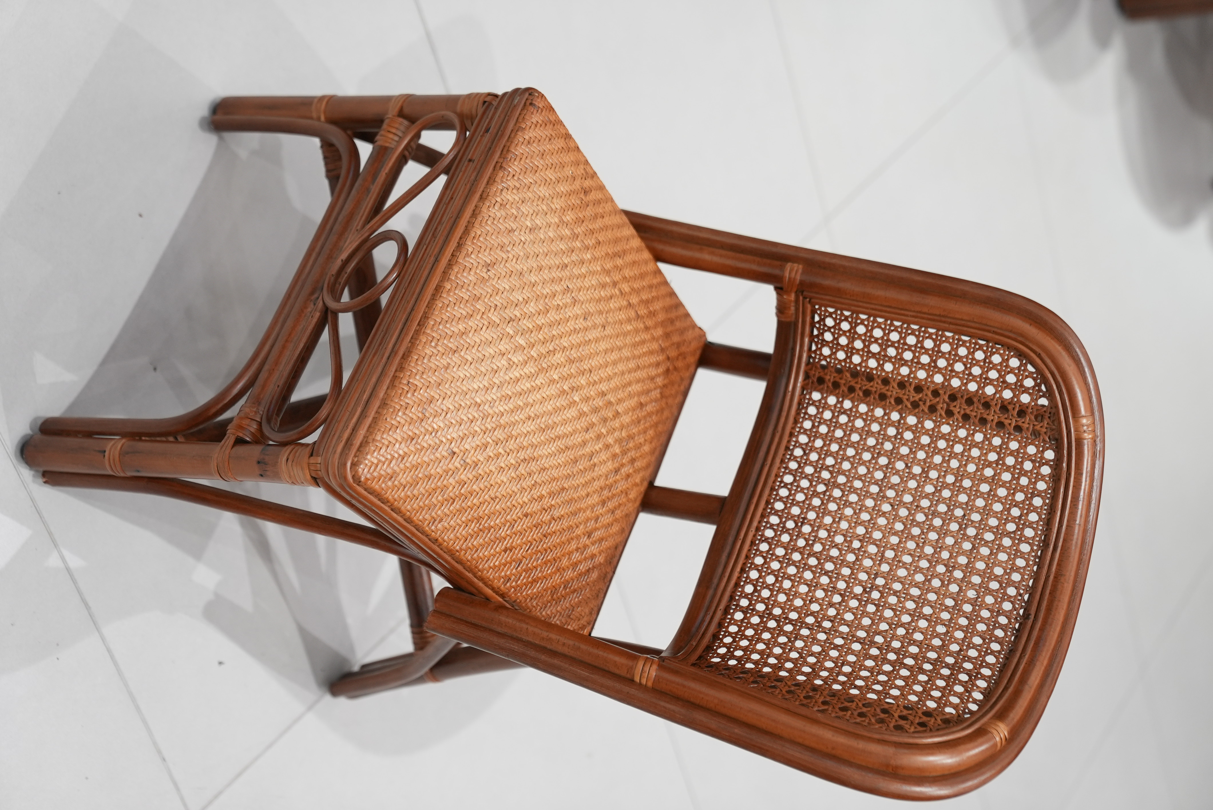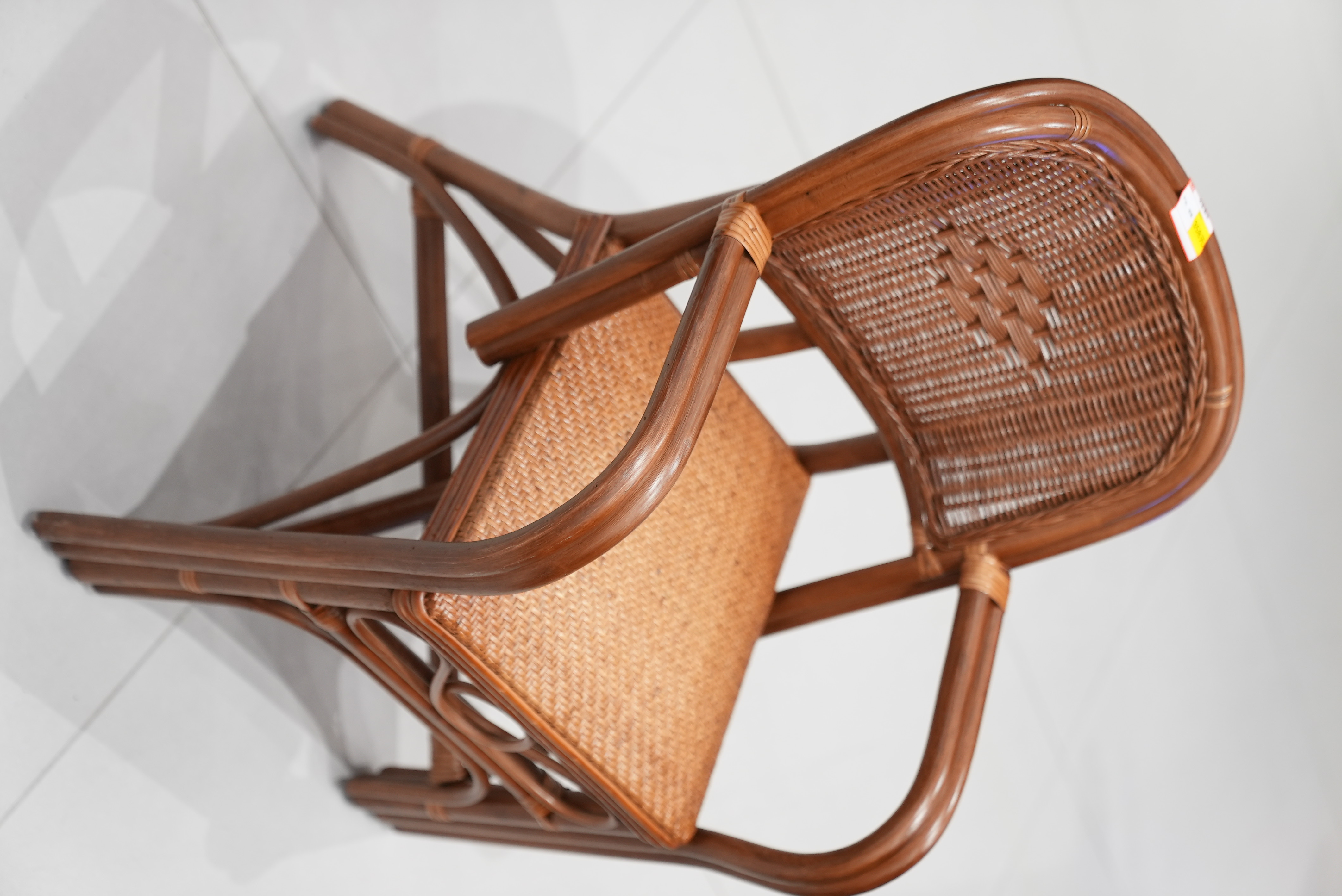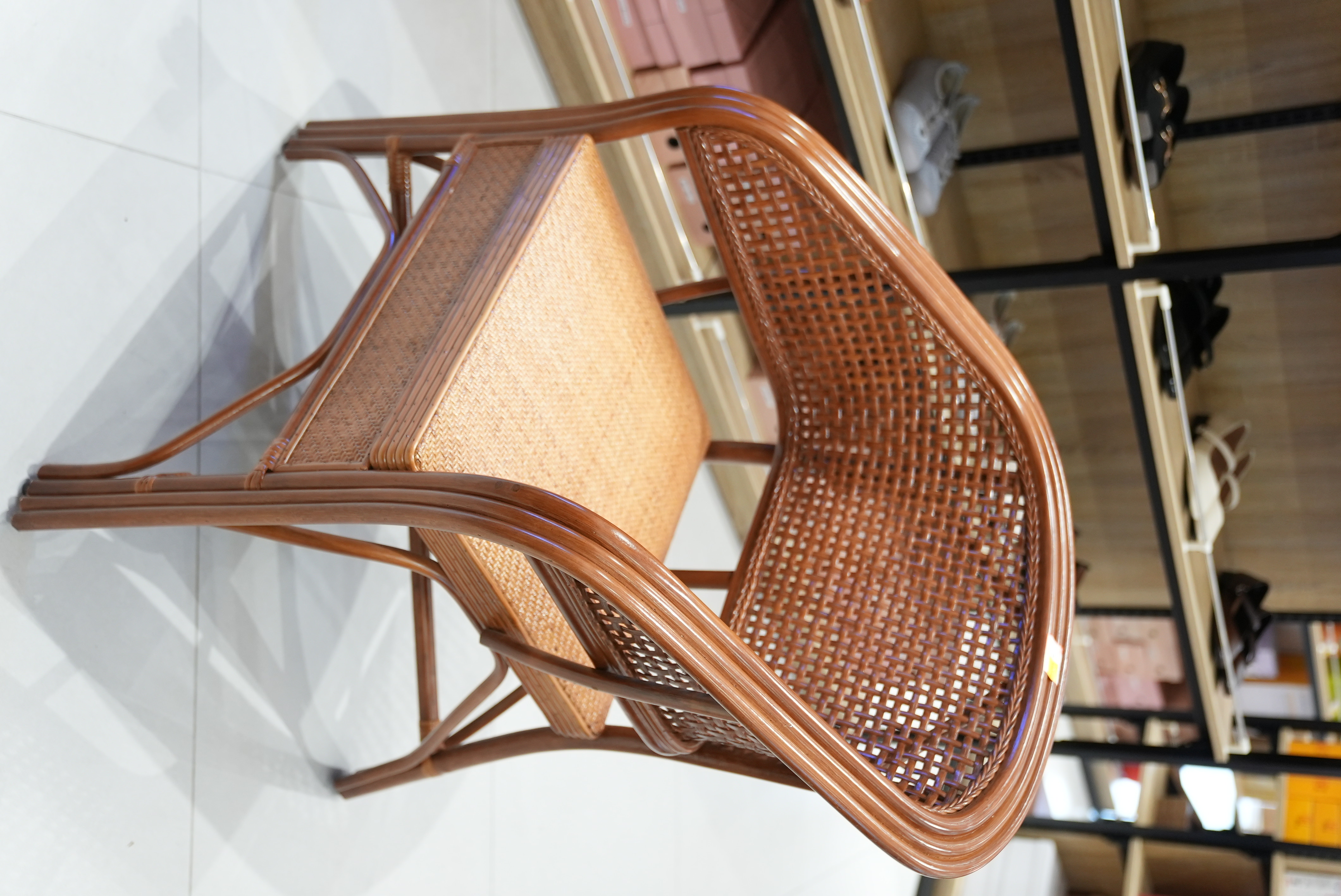 坐高恰当,座位处由印尼藤编织成的细条藤席组成,凉爽顺滑,背面改用了手工棕绷绳,更透气更轻盈。