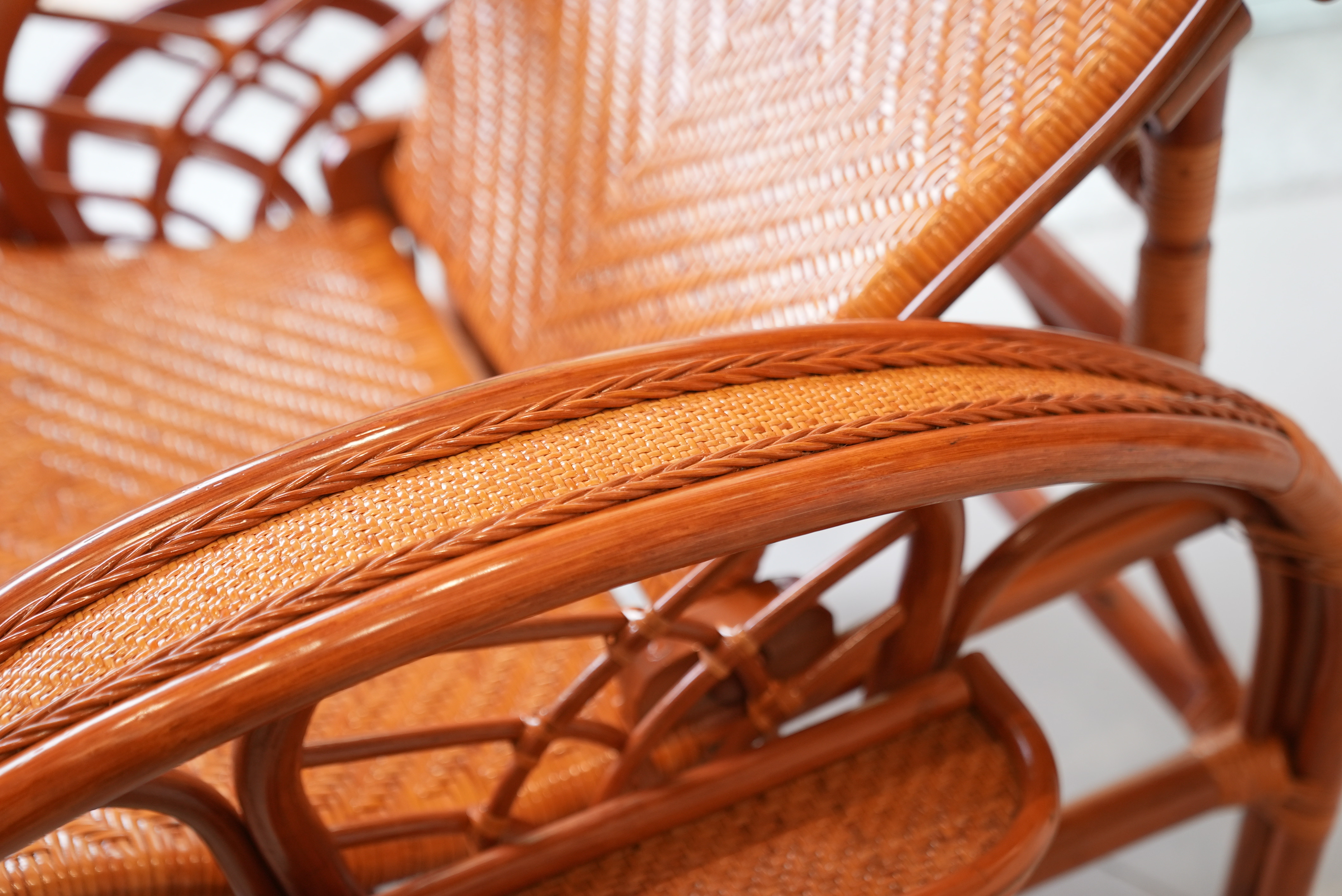 扶手和靠背,用印尼藤条,组合而成,简约大方。