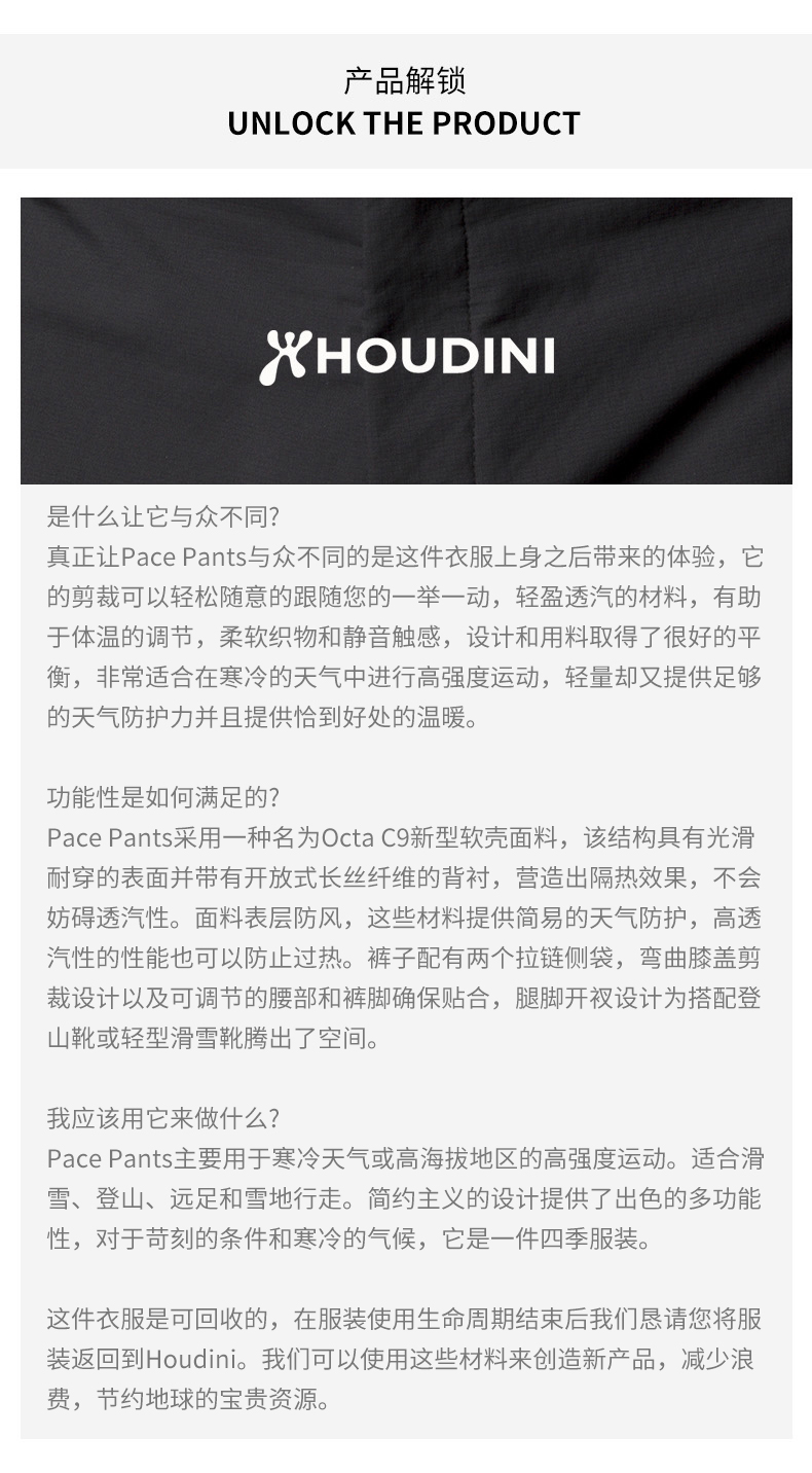 HOUDINI胡丁尼 Pace 速度户外男款软壳长裤800057
