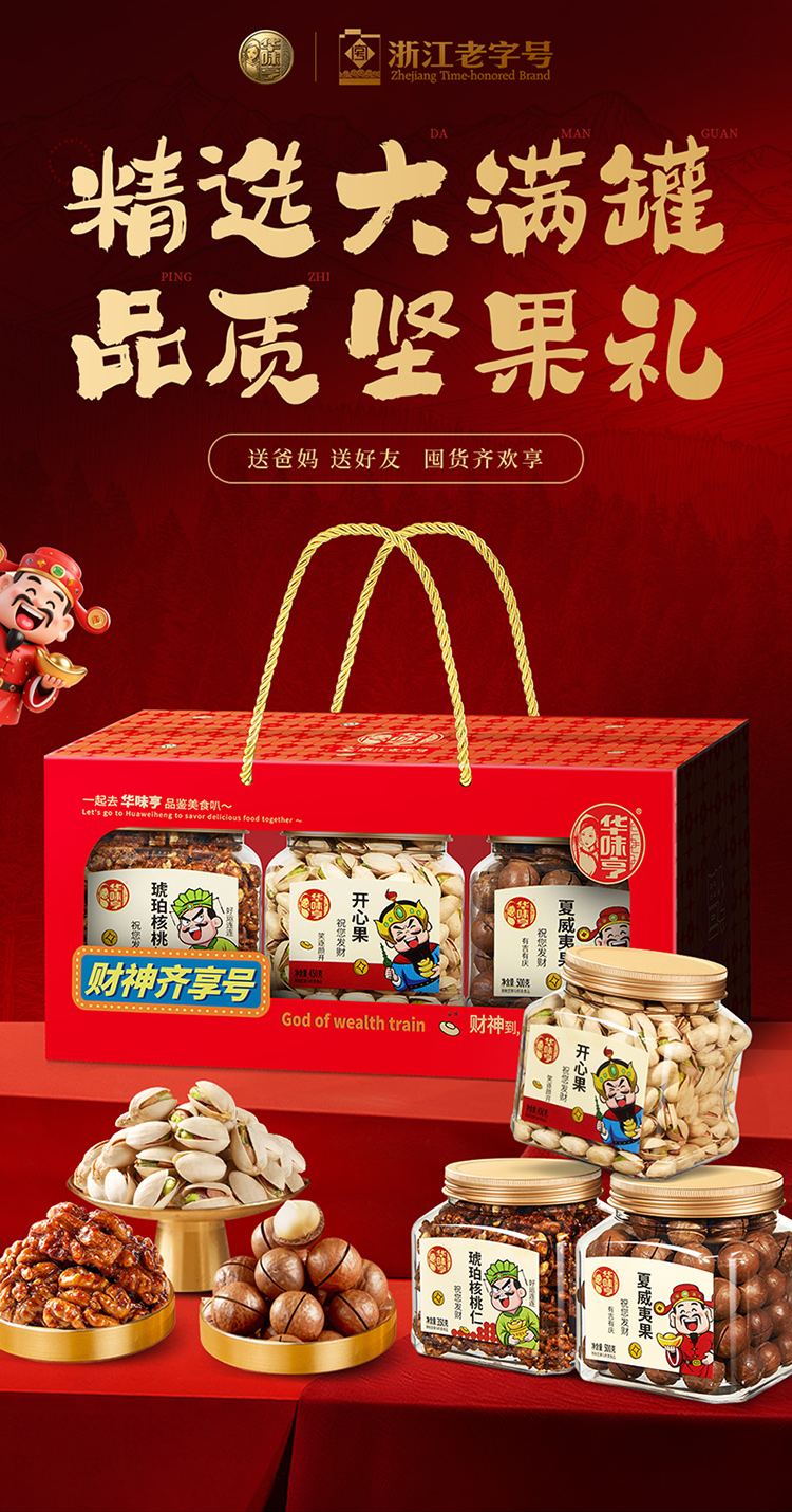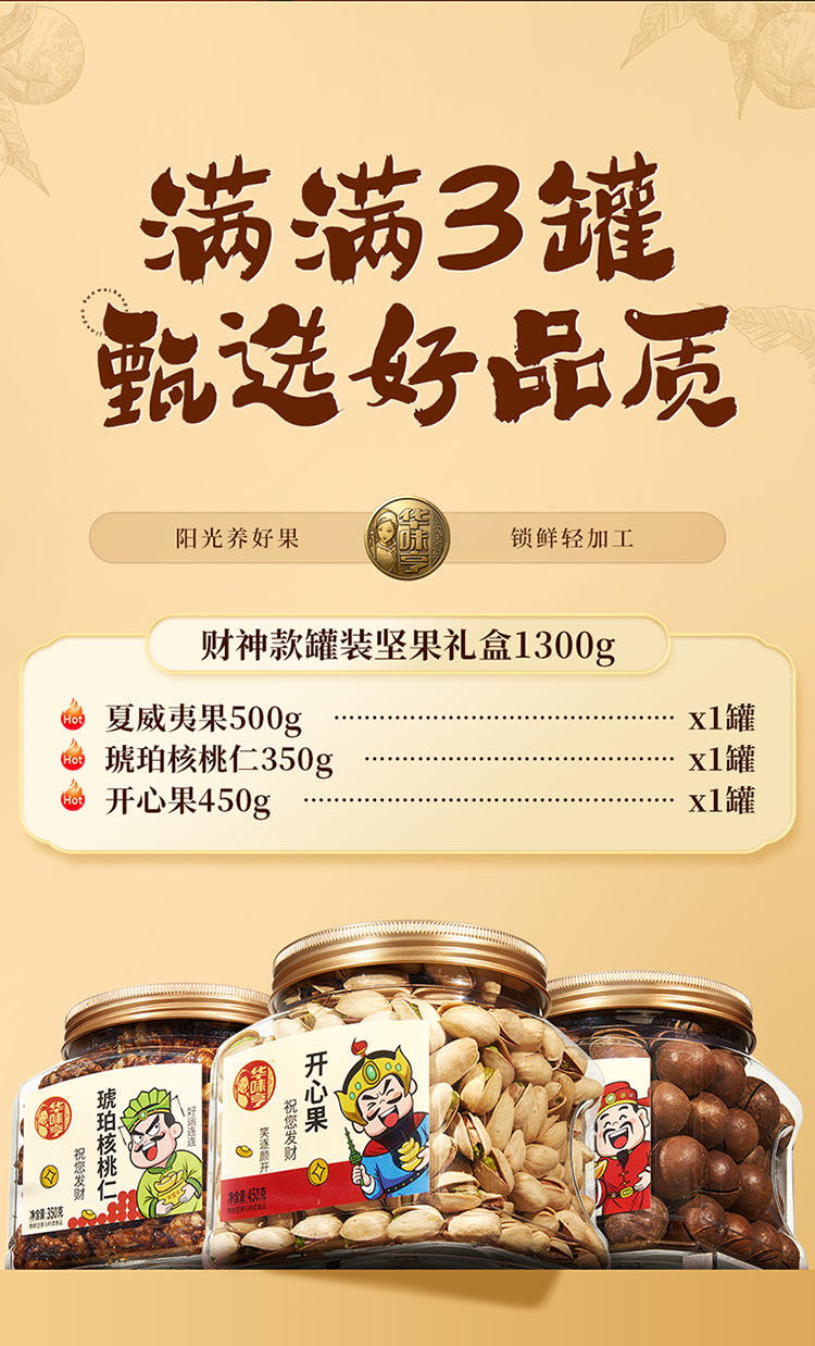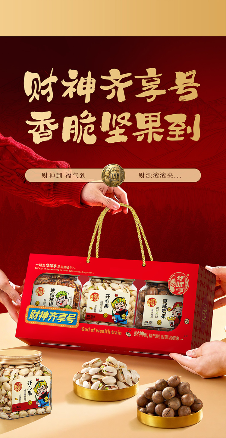财神坚果礼盒1300g 团购送礼坚果礼盒夏威夷果巴旦木休闲零食 礼盒装