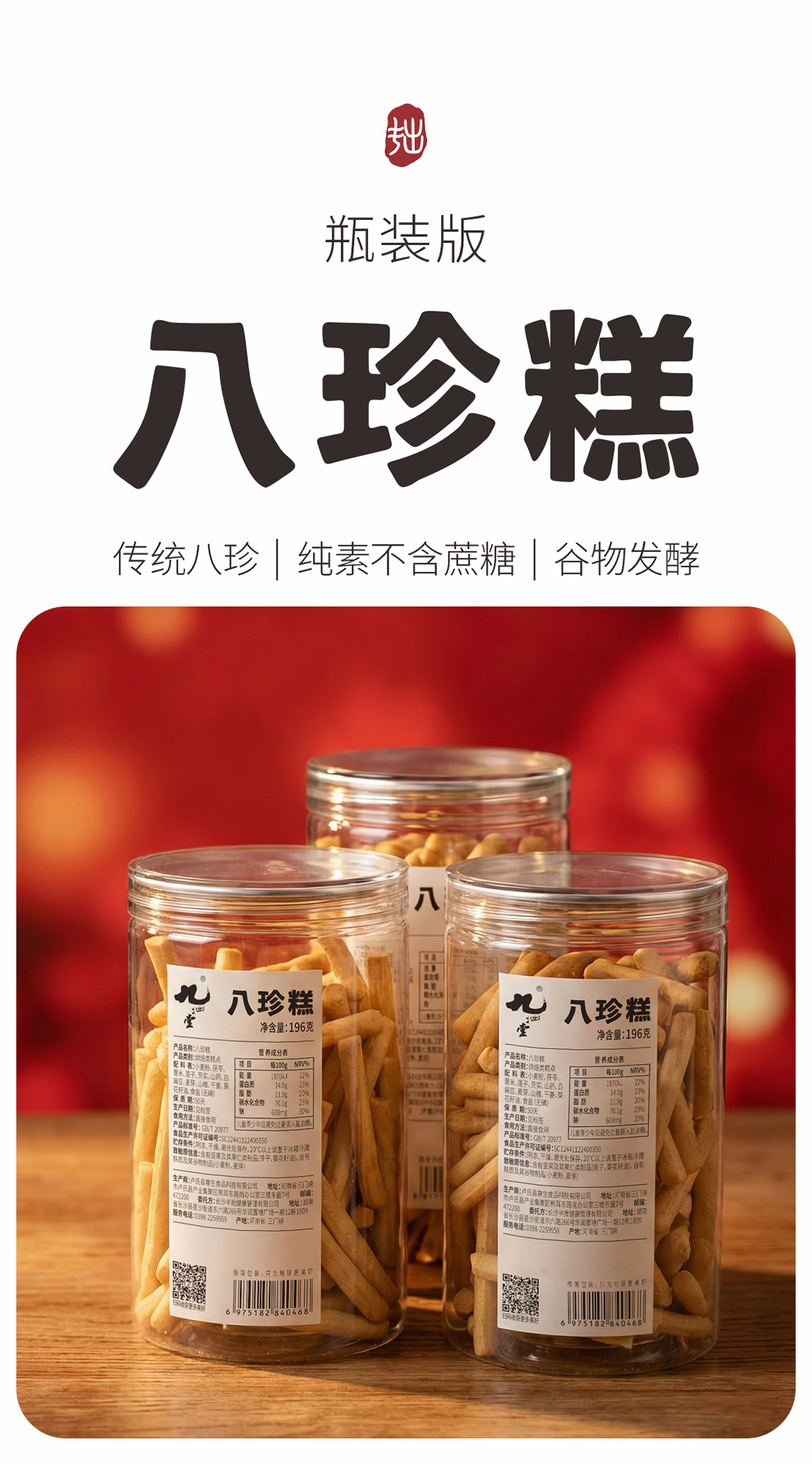 瓶装八珍糕196G/瓶丨短保预售