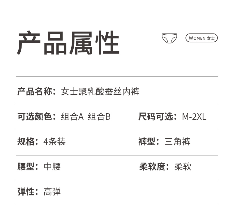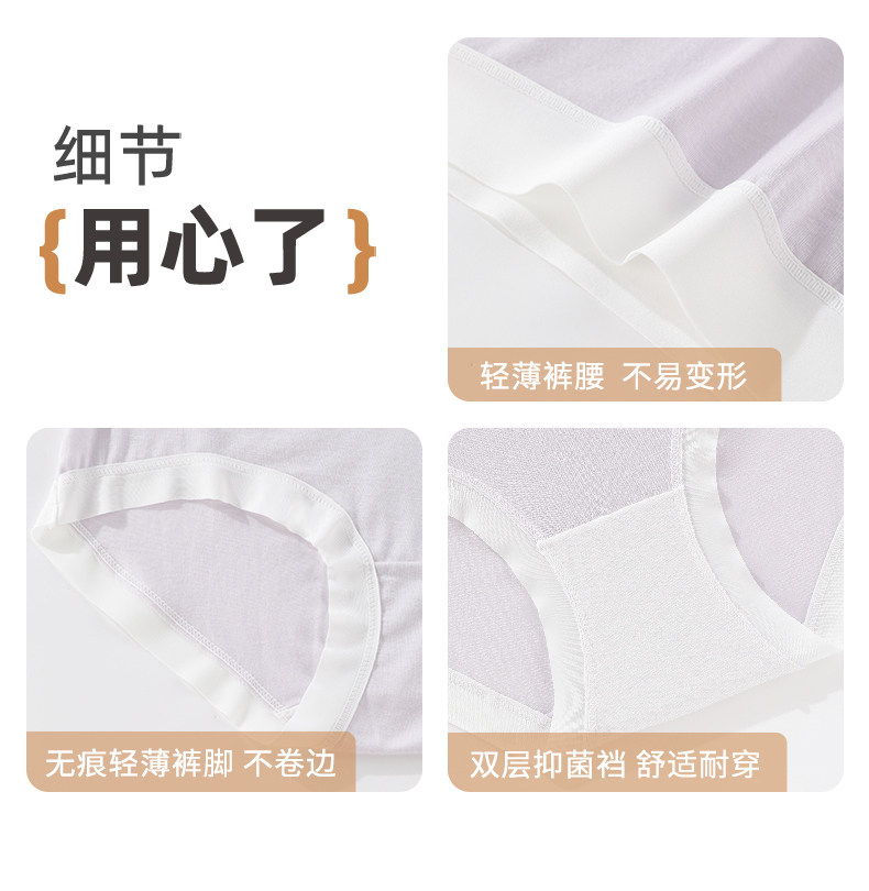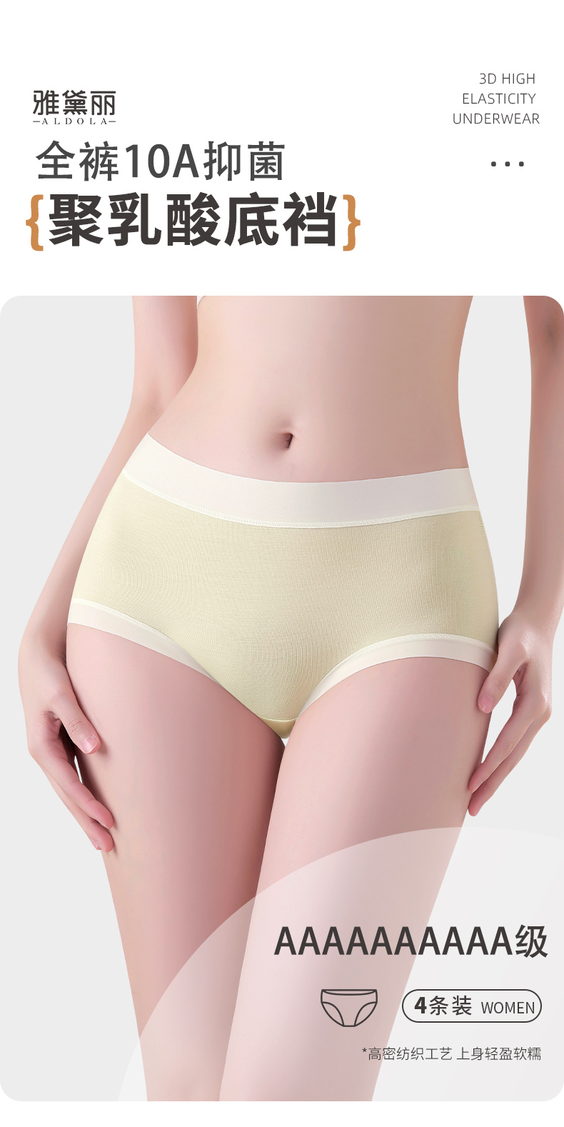 【4条装】雅黛俪女士内裤柔软舒适高弹不勒含桑蚕丝裆底三角裤头