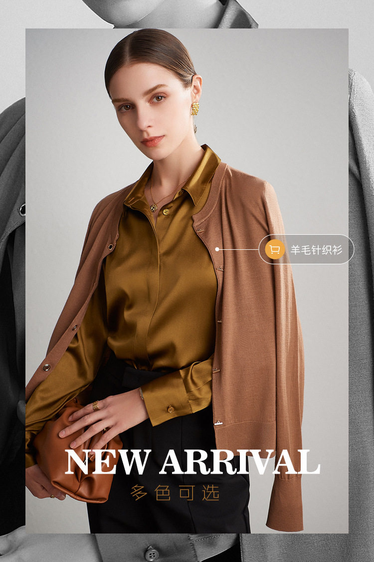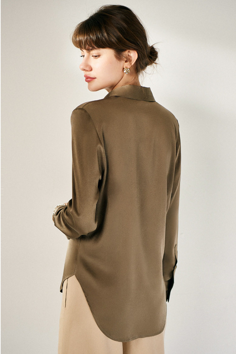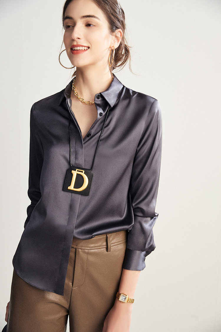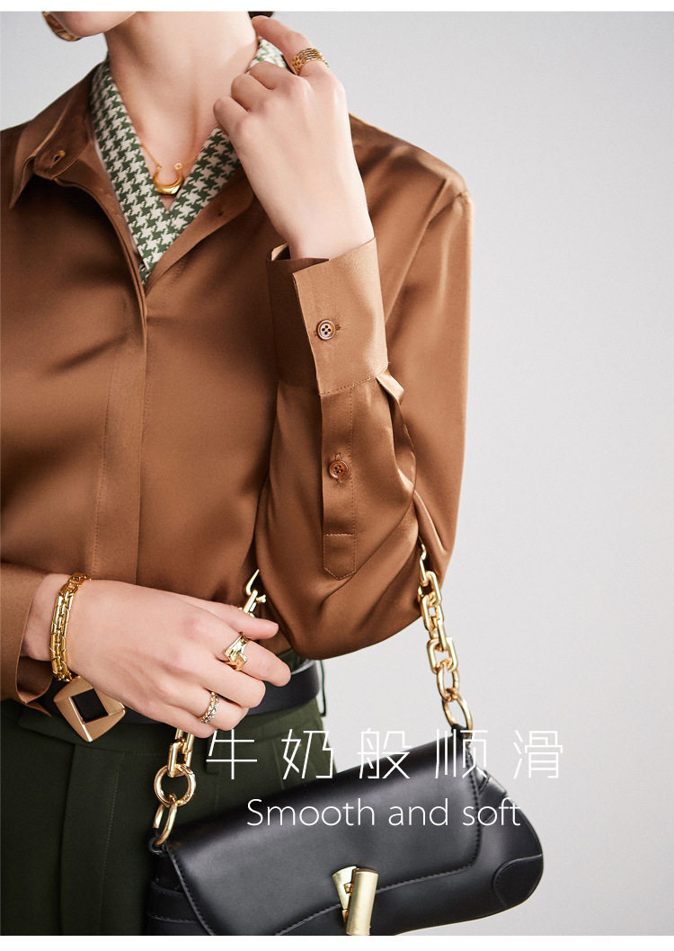 真丝衬衫女上衣时尚内搭2025新款春夏装设计感桑蚕丝翻领长袖衬衣