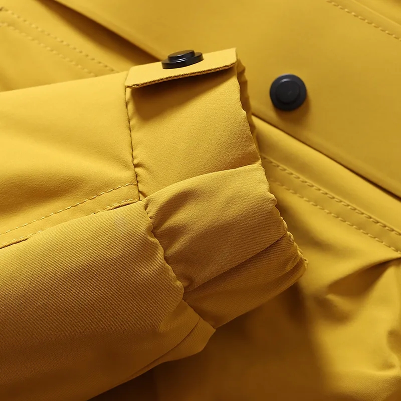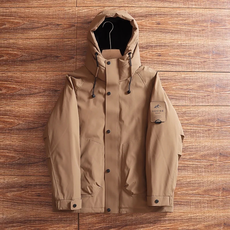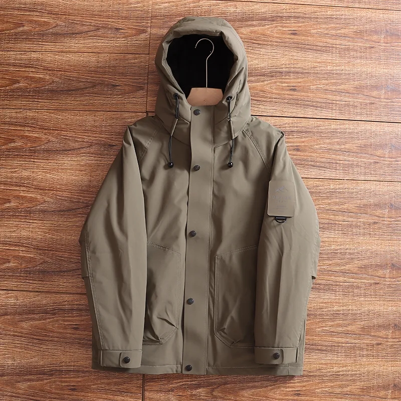 轻工装风多口袋的设计,户外防风防水面料!柔软度和耐用性,以及均衡防风性能也毫不逊色! 后背处有科技保温内里,保暖性更上一层楼!内里新国标90鸭绒填充!无缝锁绒工艺,不跑绒不钻绒! 连帽设计,不可拆卸!机能风多口袋,袖子上有魔术贴设计,拉链+按扣门襟!辅料都是定制的,坚固耐用!细节面料做工可见!秋冬不可或缺的羽绒服!