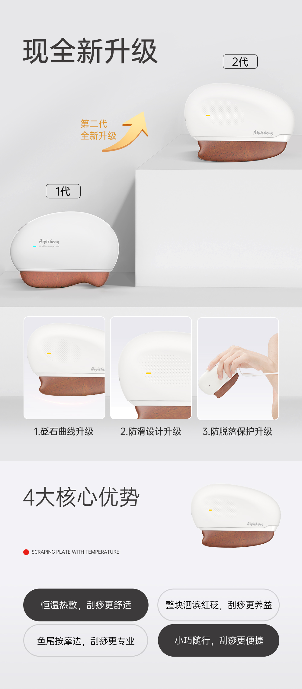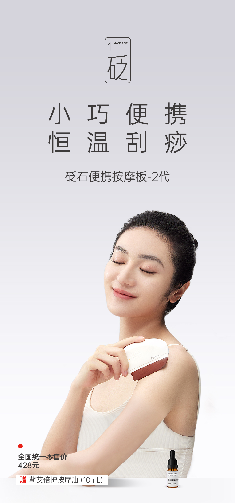 【砭石便携按摩板-2代(萌萌板)】有温度的砭石刮痧板