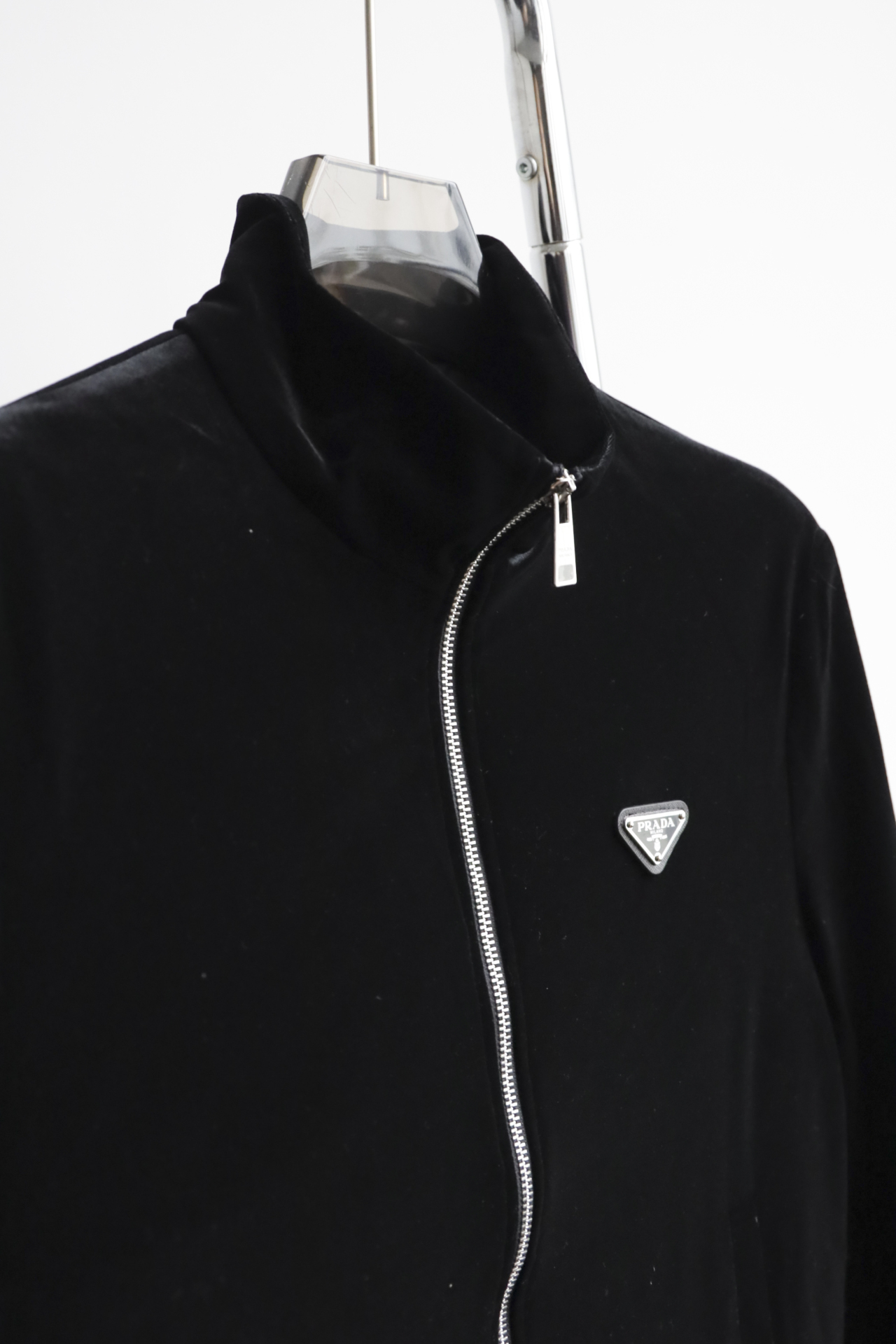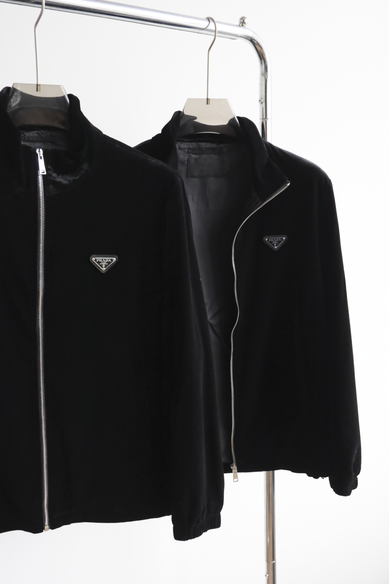 P.R.D 春季款 丝绒 黑色立领夹克外套