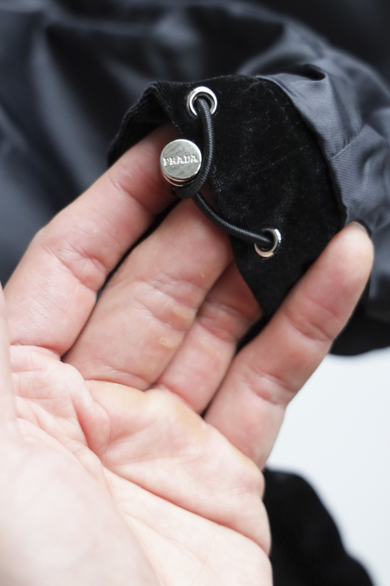 黑色丝绒质感外层,手感细腻不掉绒,胸口珐琅3角标装饰