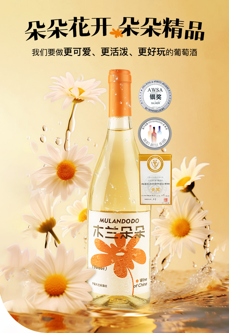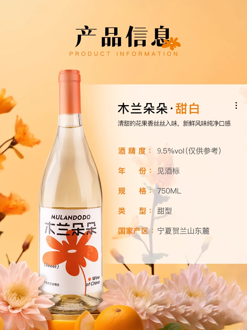 木兰朵朵雷司令甜白葡萄酒国产宁夏贺兰山东麓白葡萄酒 9.5%vol 750ml