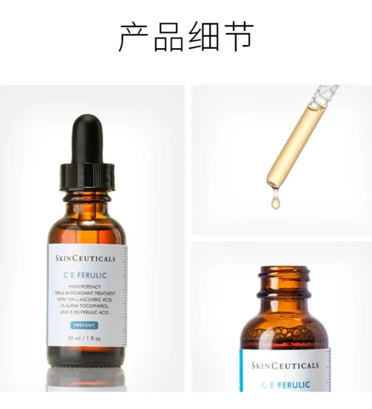 内含15%左旋维生素C1%维生素 E 和0.5%阿魏酸皮肤抗氧化的同时还能提亮肤色、淡化细纹,坚持用下来素颜状态很可
