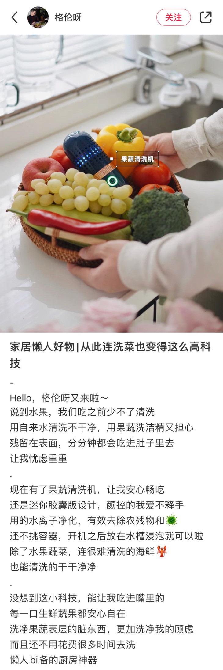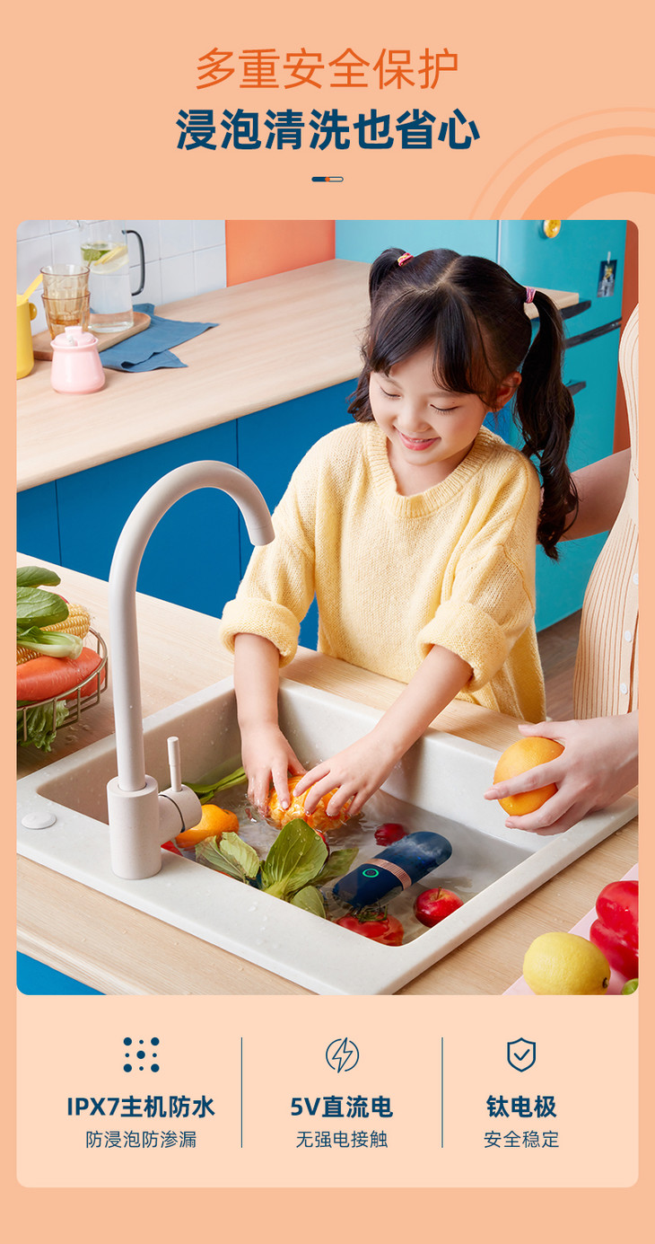 这是东菱和阿里巴巴设计团队基于市场大数据,为亚洲用户真实需求打造的胶囊果蔬净化器!相比其他,它非常小巧,无线使用,除箘率>99.9%,除农残率>90%。传统的清洗机一般以带水槽式、臭氧式和超声波式为主,体积大占空间,臭氧浓度控制不好对人体有一定危害,而超声波式又容易让污染物渗透进食物内部。东菱净化器采用了高科技的羥基水离子净化技术,以水本身为原料,通过电解生成OH-离子,通过氧化反应杀灭病原微生物,并将农药降解为无害物质,所以整个净化过程是无化学添加也不会破坏食物的营养的哦。