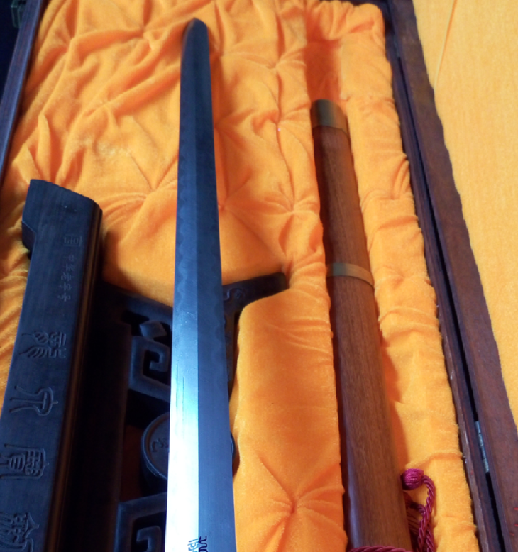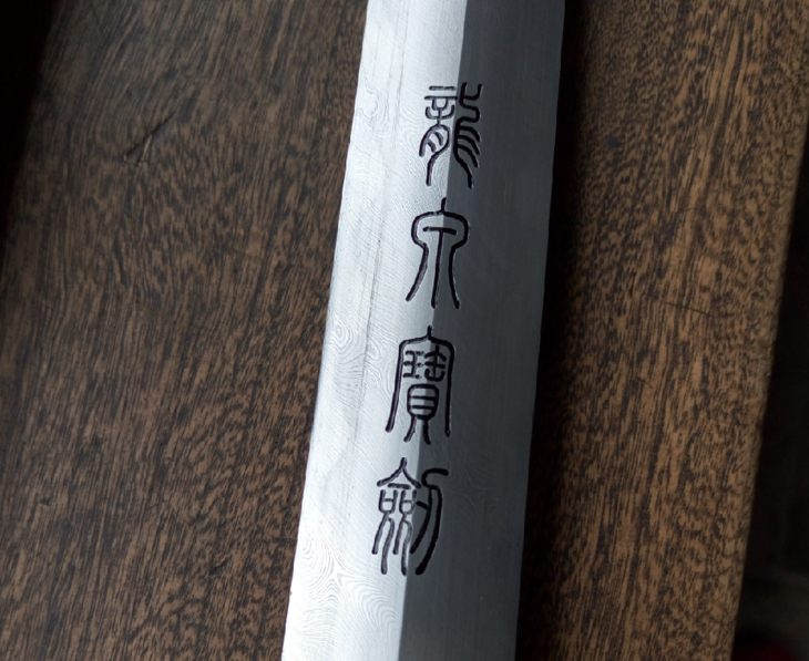 白虹唐刀 /唐剑 百炼折叠锻造花纹钢 覆土烧刃 精细研磨 黑檀木鞘 结实耐用 (未开刃)