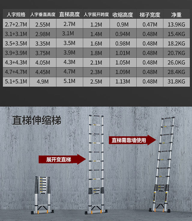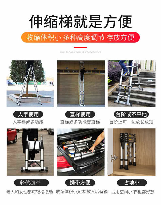 人字梯子家用多功能折叠伸缩铝合金工程加厚升降节节升室内小楼梯