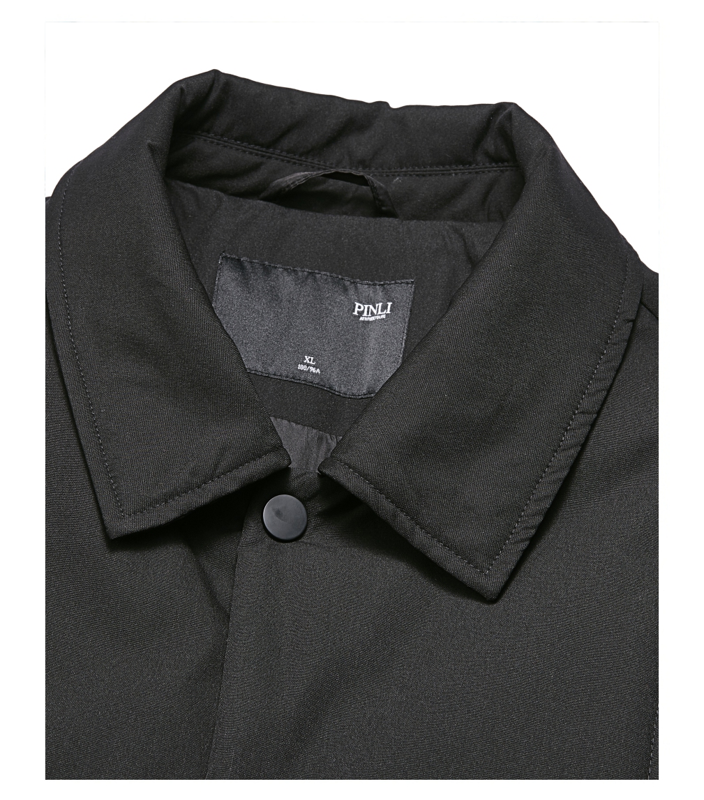 PINLI品立裁魂冬季新款翻领中长款棉服男士潮牌宽松棉衣外套BC243105108