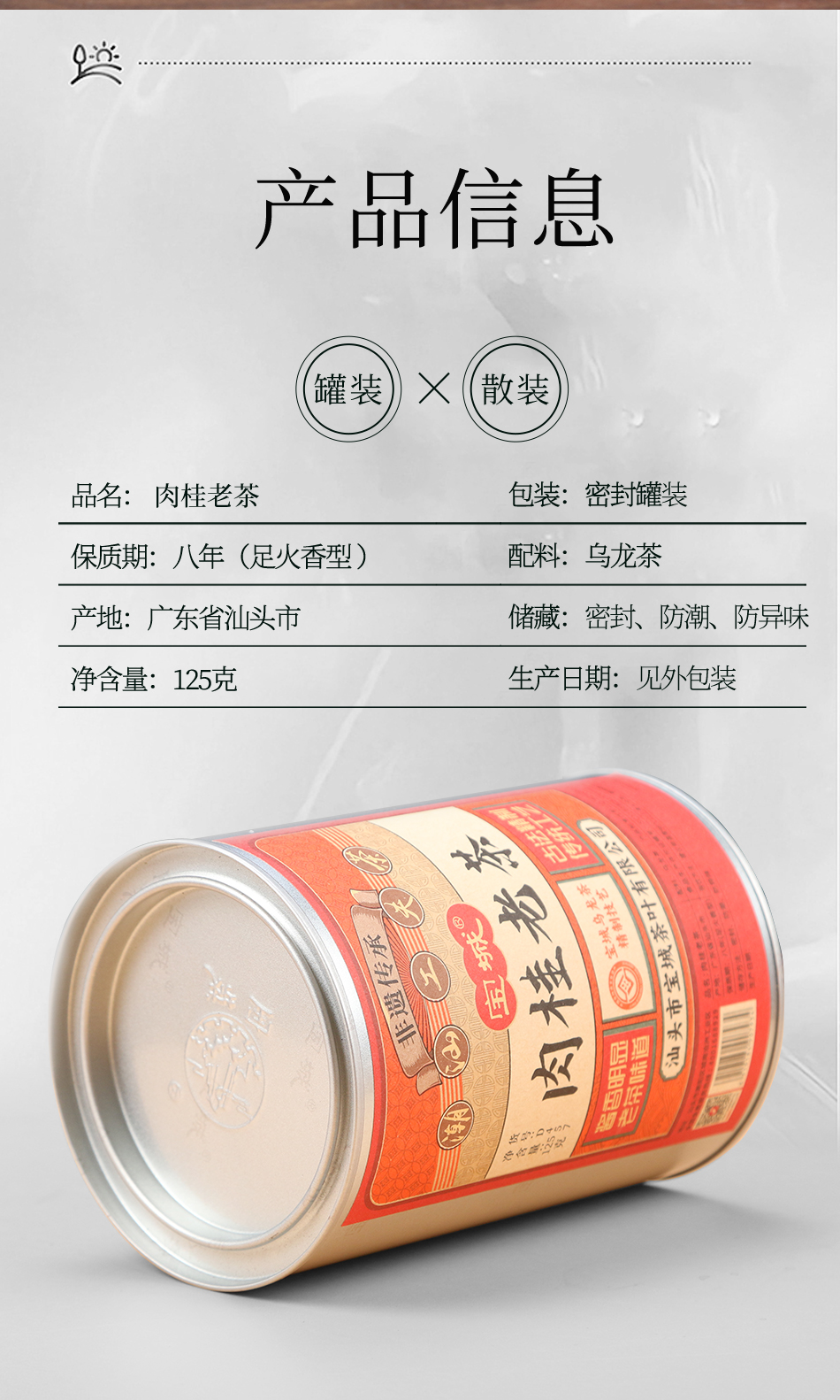 宝城肉桂老茶4罐装共500克散装茶叶乌龙茶岩茶D457