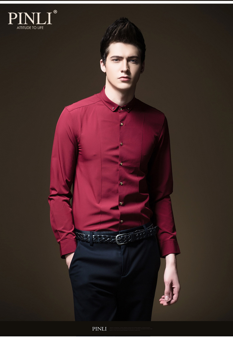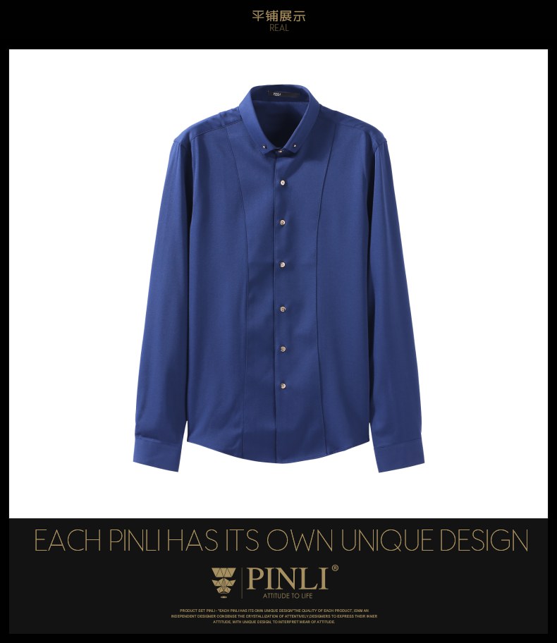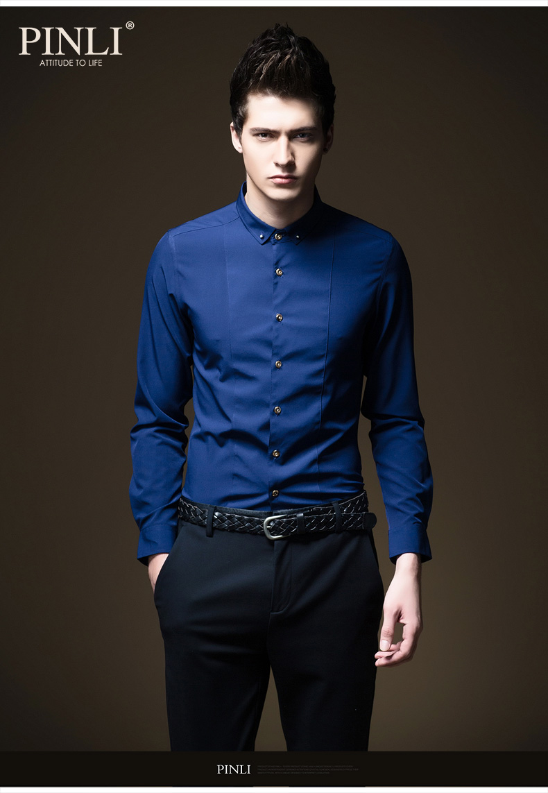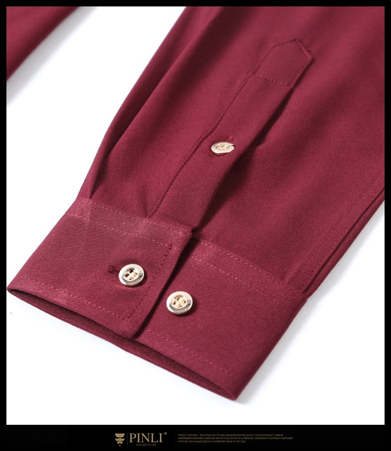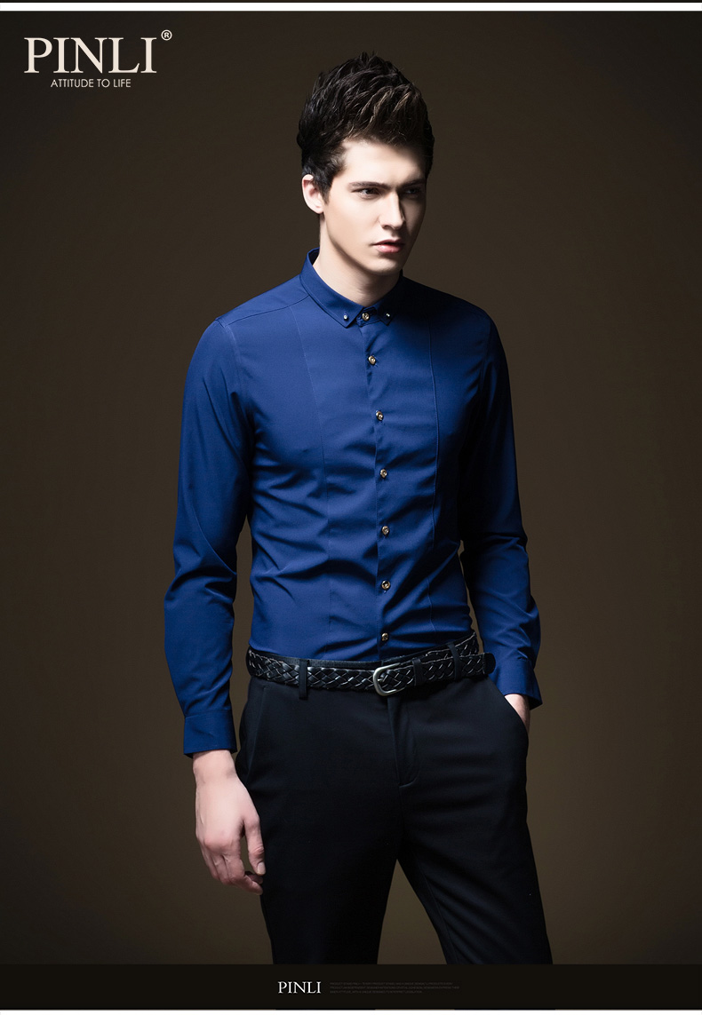 PINLI品立秋季新款纯色修身免烫抗皱衬衫男商务休闲长袖衬衣B242113094