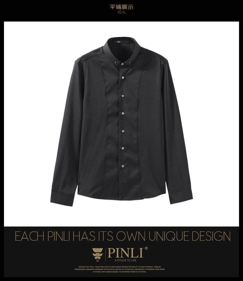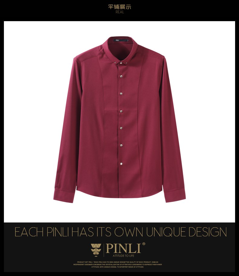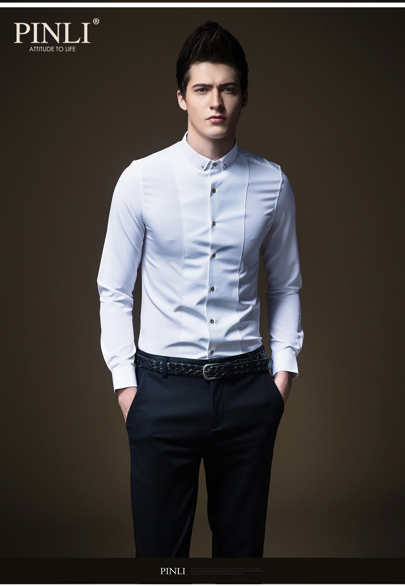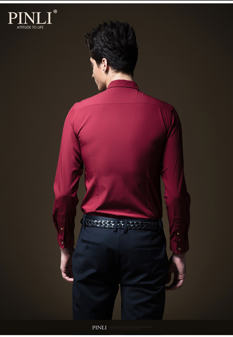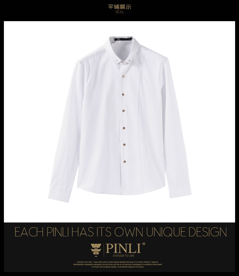 PINLI品立秋季新款纯色修身免烫抗皱衬衫男商务休闲长袖衬衣B242113094