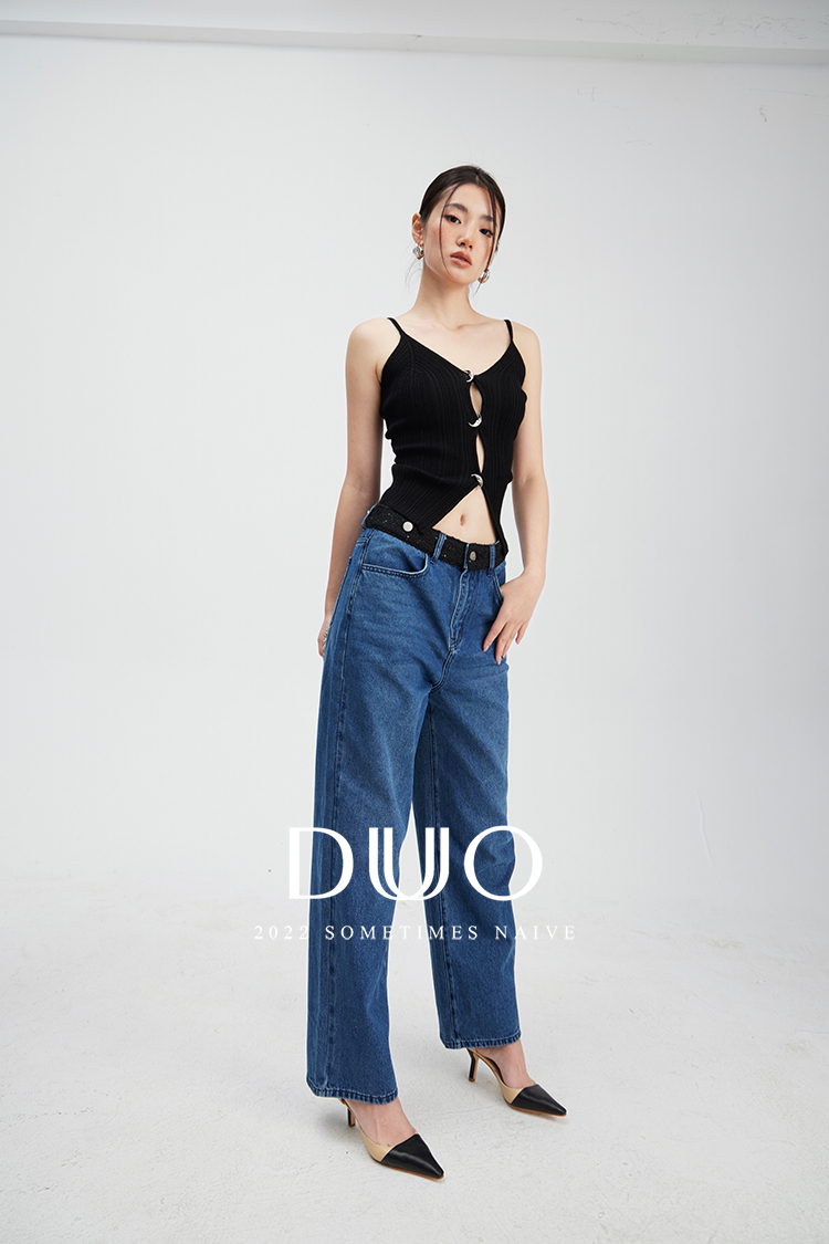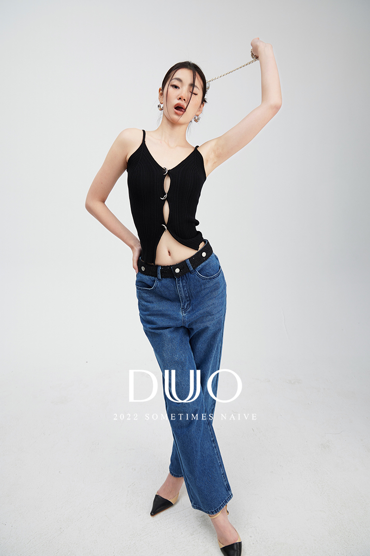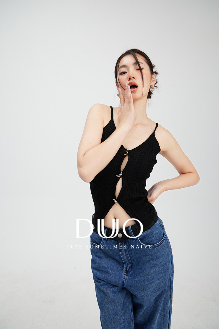 沉静如海别致月亮修身性感针织背心和开衫