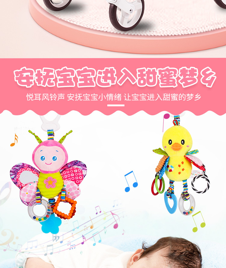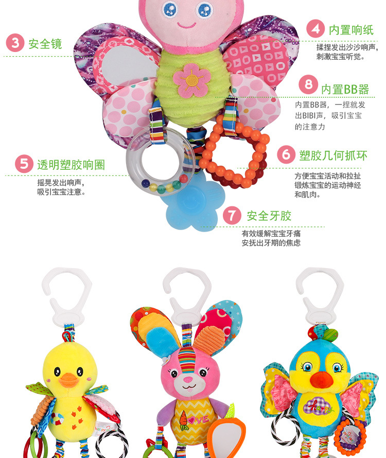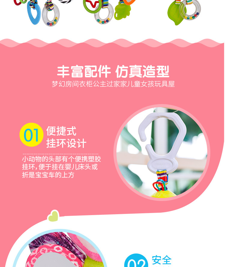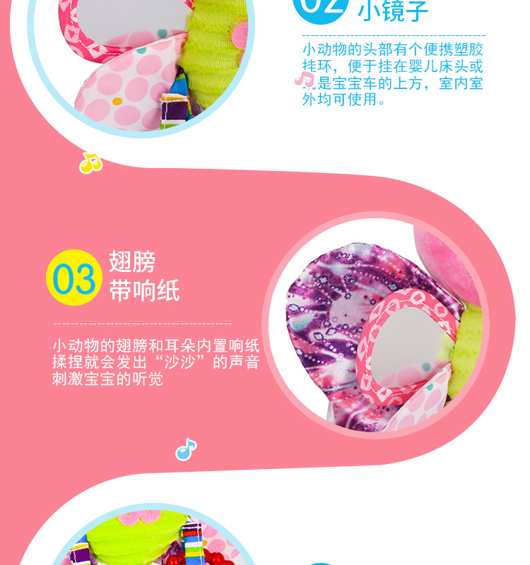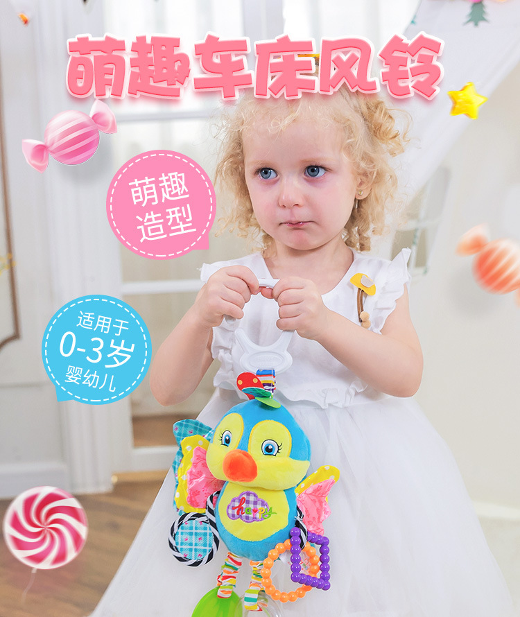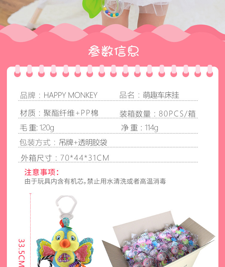 【萌趣车床挂】Happy monkey婴儿玩具0-1岁车挂床挂牙胶镜子摇铃安抚宝宝玩具