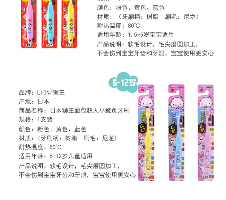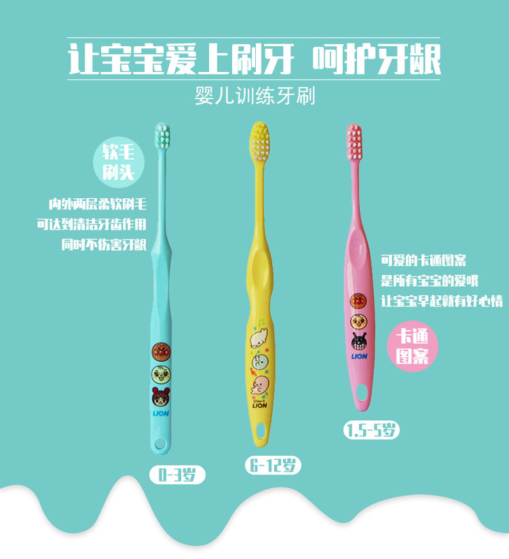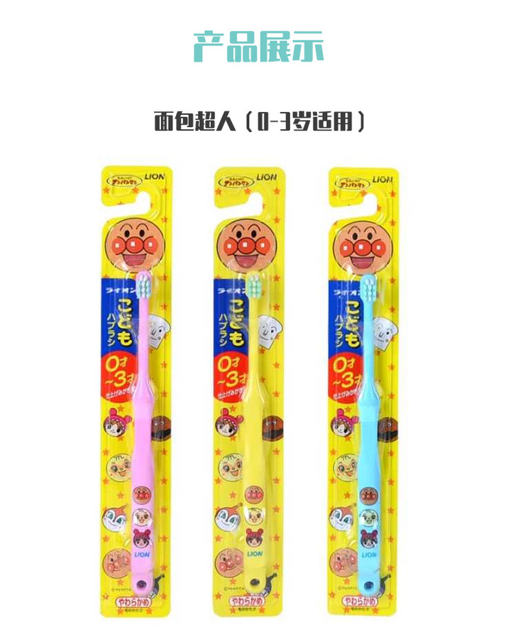 〖中文标〗3支装 日本原产狮王Lion面包超人儿童婴儿牙刷6-12岁 3款随机发