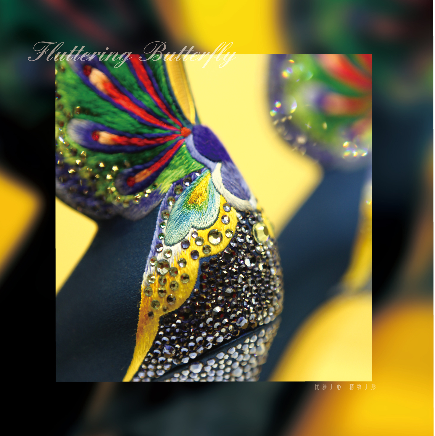 设计灵感以凤飞蝶舞之姿,象征不惜生命、只为追求瞬间永恒的精神。此款运用蜀绣一针一线勾勒、1500多颗施华洛世奇水晶镶嵌而成的作品。2015年在国际特奥会慈善晚宴上,该作品被国际特奥会甄选为慈善拍品,由国际特奥会大使刘涛激情助拍,最后以10.5万元被爱心者收藏。