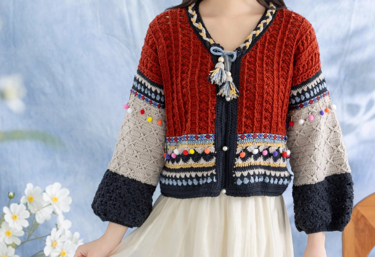 苏苏姐家晏语谣民族风外套手工DIY羊毛编织钩针上衣毛线团材料包