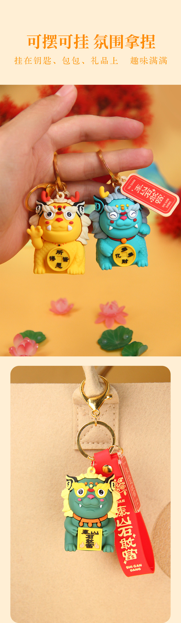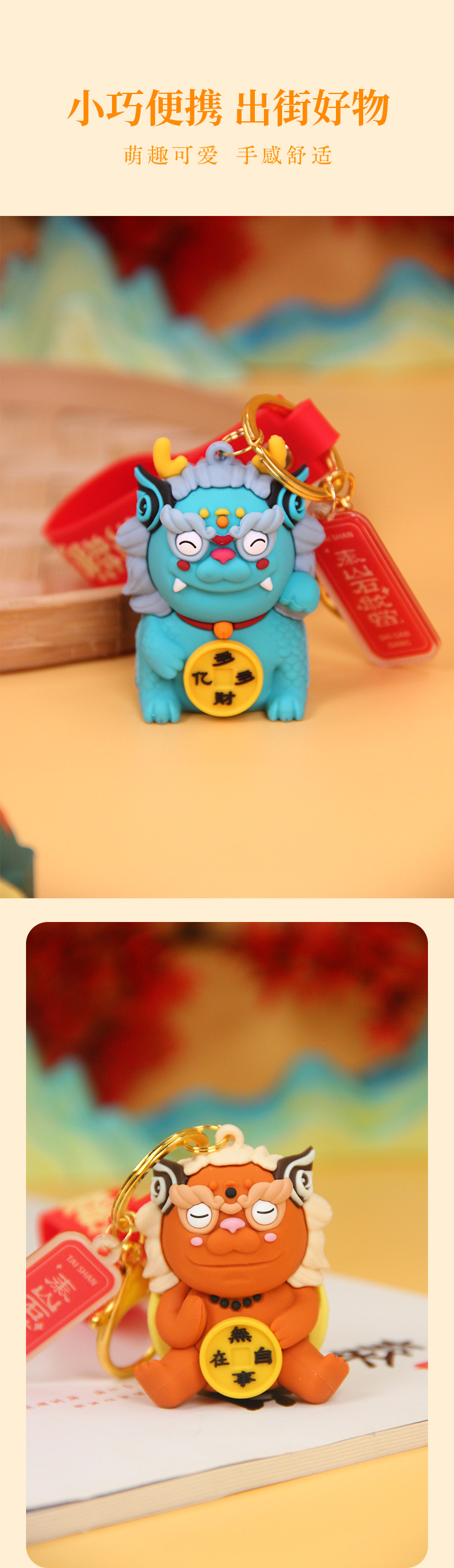遇石记文创泰山石敢当国潮五行神兽钥匙扣包挂