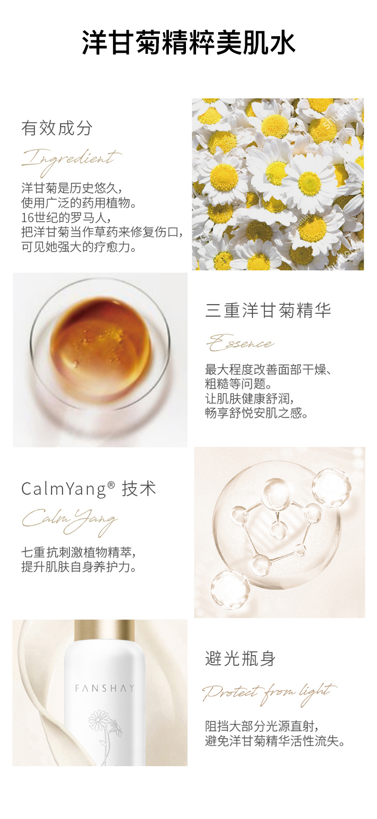 梵秀伊(FANSHAY),为女性肌肤问题提供专业性的综合解决方案,从根本上调理肌底层细胞,并坚持以天然植物萃取精华。产品以草本植物为重点,取中草药之精华,辅之现代高科技提纯技术,让肌肤由内而外深层改善