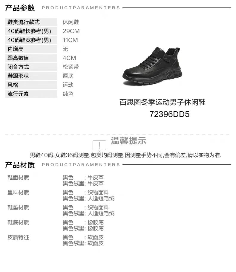 【云粉节】BF楼百思图25冬季新款简约保暖加绒户外休闲运动真皮男鞋72396DD5吊牌价999,现价500