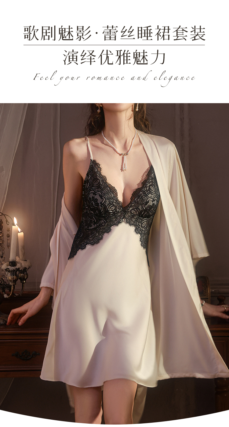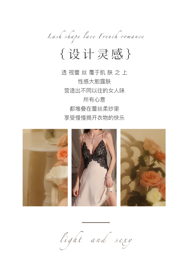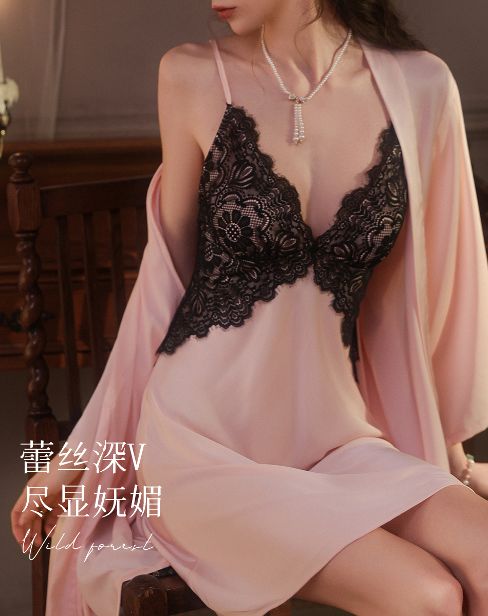 春夏性感深V蕾丝美背法式浪漫吊带睡裙女轻薄透气带胸垫家居天使睡裙套装