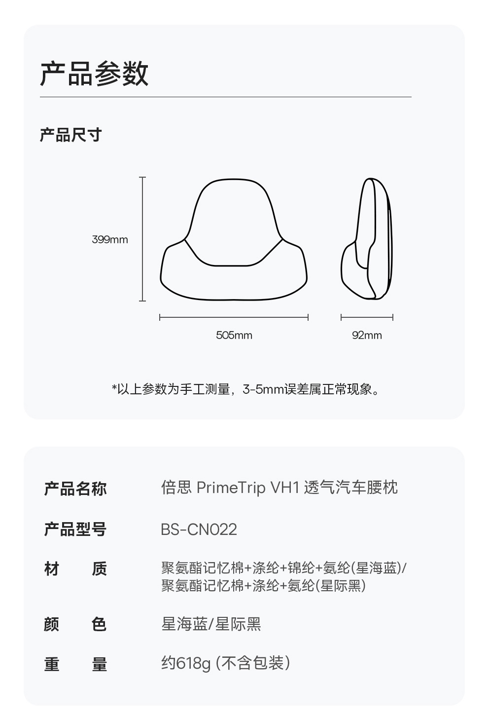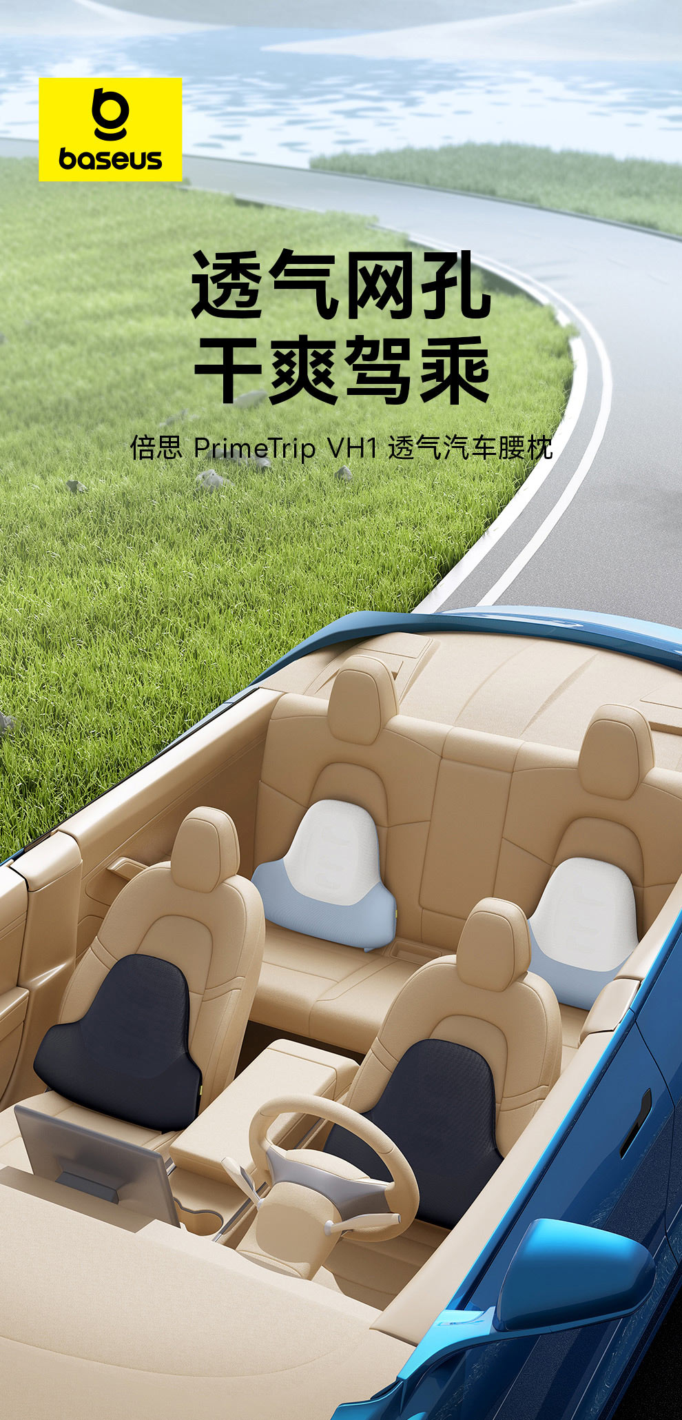 倍思 PrimeTrip VH1 透气汽车腰枕
