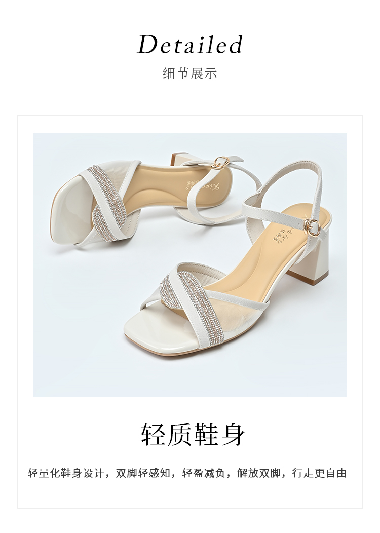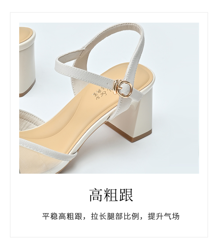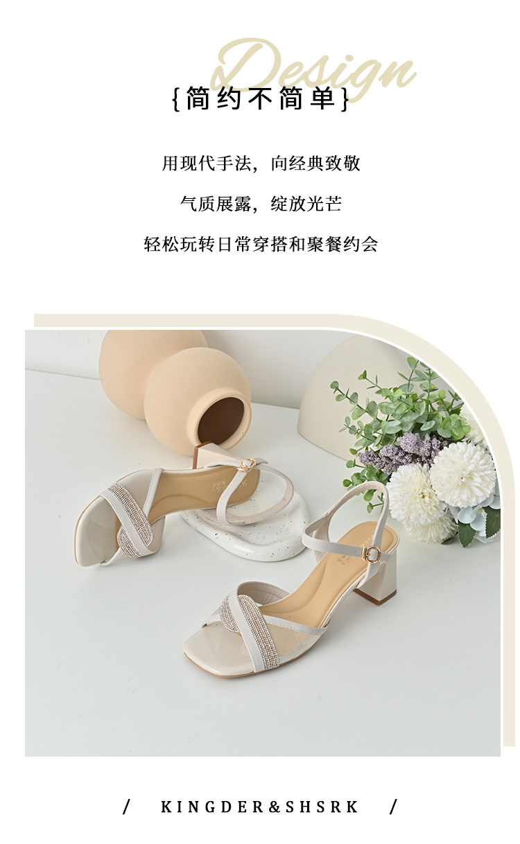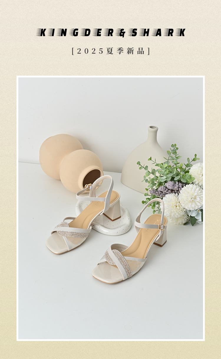 经典鲨2025夏季新品气质通勤高粗跟露趾后空舒适简约凉鞋女KC19-529171