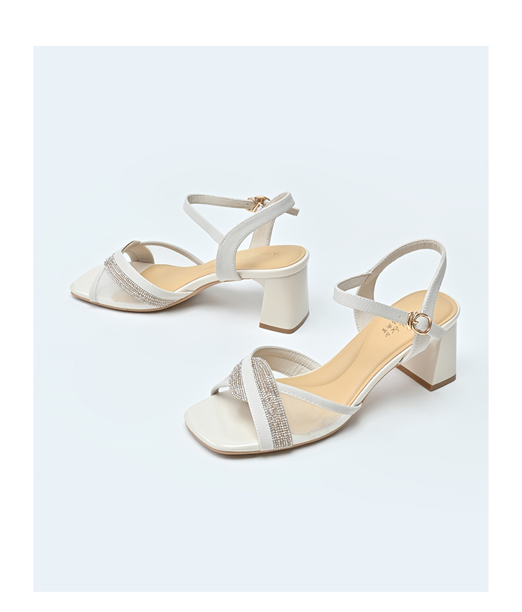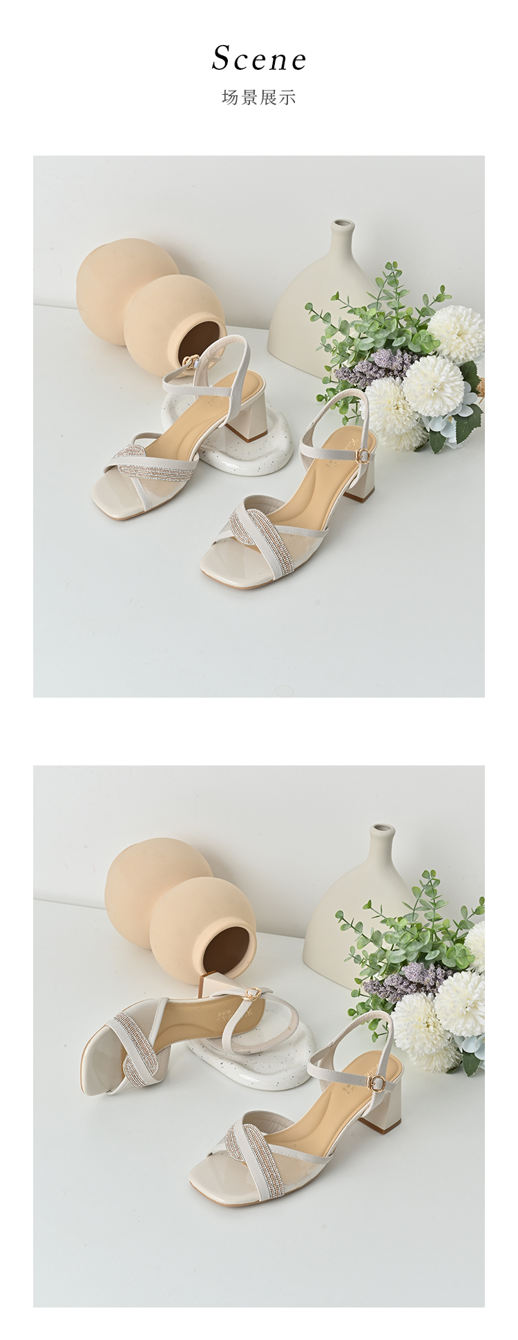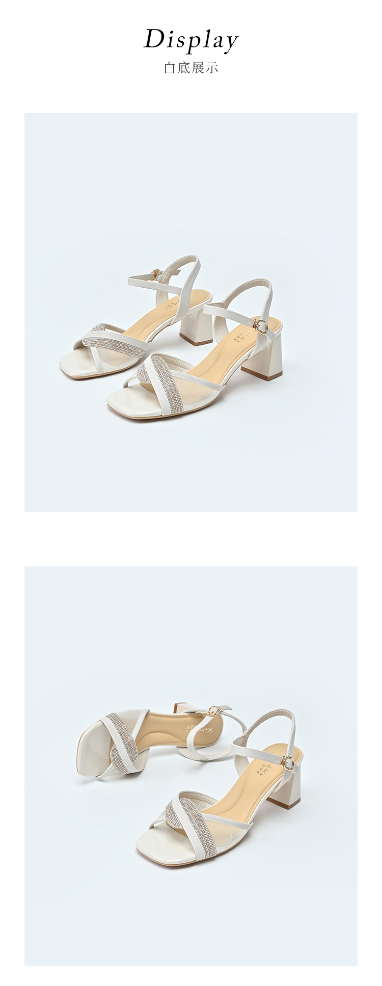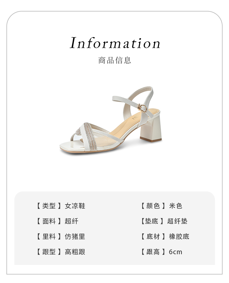 经典鲨2025夏季新品气质通勤高粗跟露趾后空舒适简约凉鞋女KC19-529171
