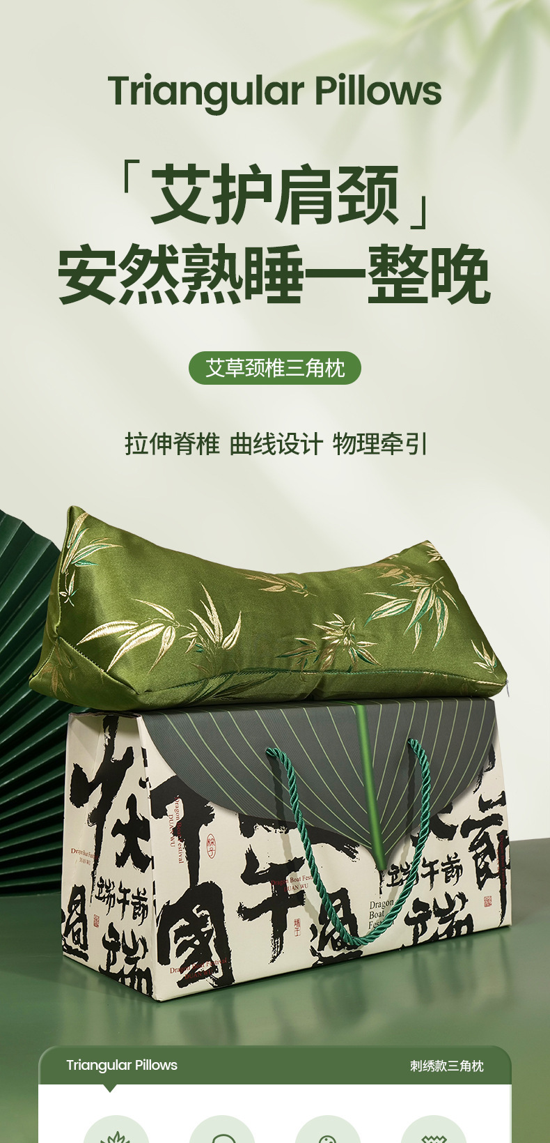 【端午限定❗️艾草颈椎三角枕】物理牵引,三角枕型设计,呵护颈椎自然直,选用质地柔软亲肤的锻布面料,家用睡觉睡眠护颈椎久睡不塌礼盒包装节日送礼QQ