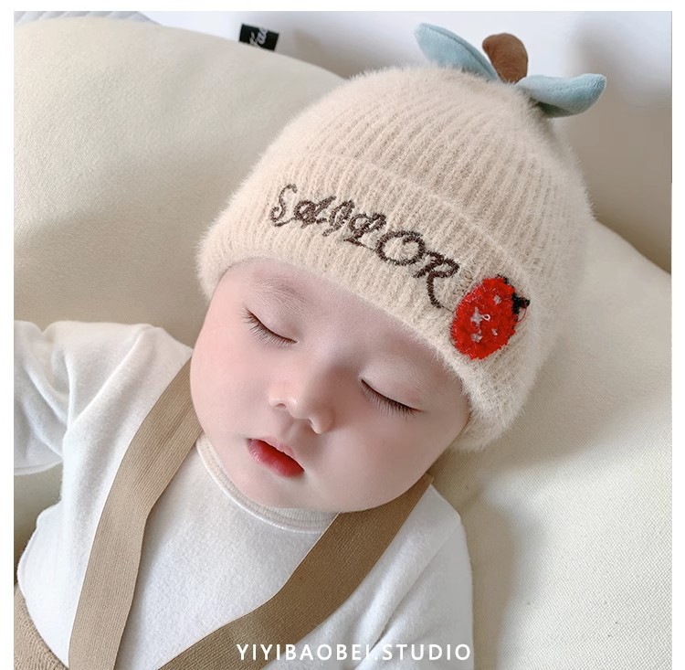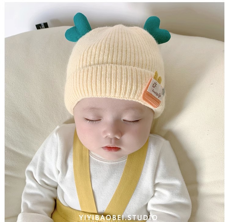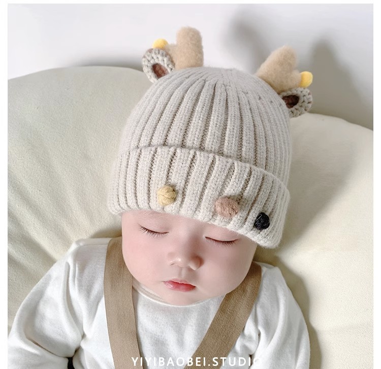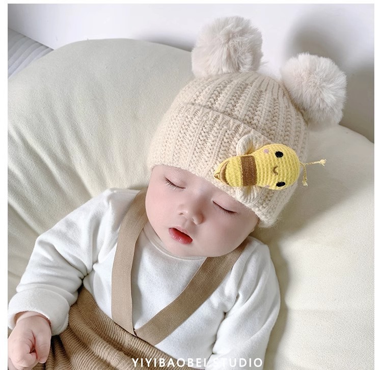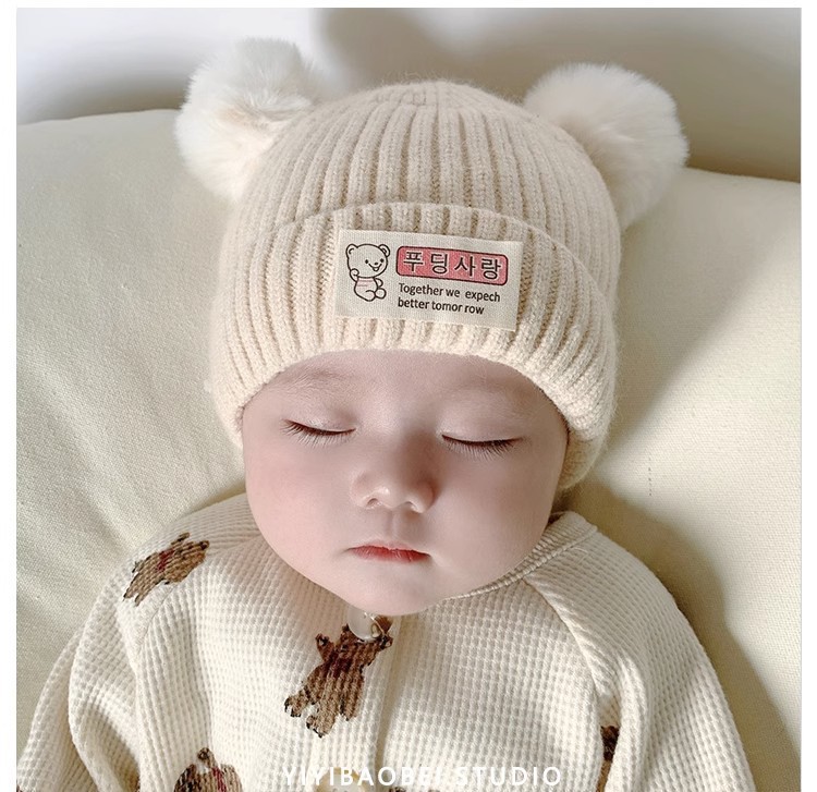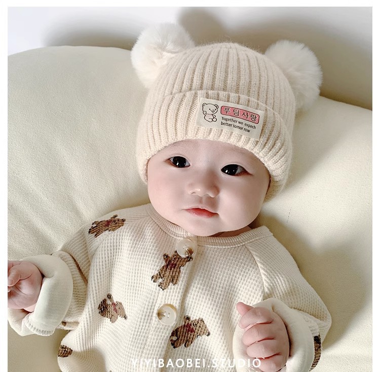 【可爱柔软毛球❗️绵羊绒婴儿帽子】保暖内里温柔舒适秋冬季超萌新生幼儿胎帽男女宝宝毛线帽初生针织帽父亲节礼物新年礼盒年货礼盒