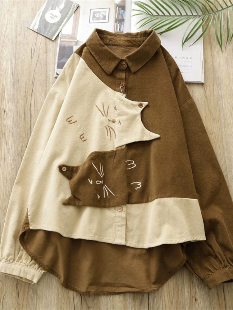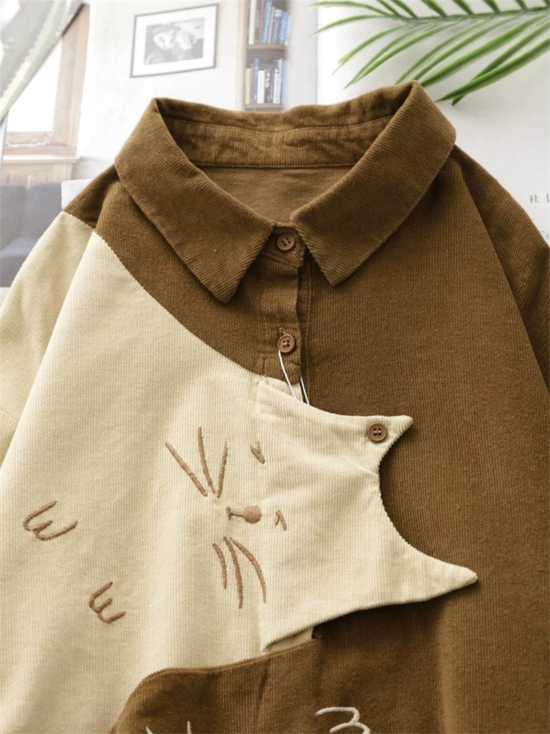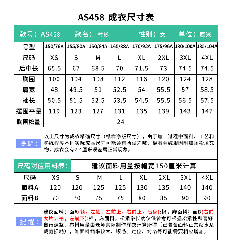 裁缝学苑AS458灯芯绒衬衫纸样女装长袖宽松翻领撞色打底衫上衣样板图纸