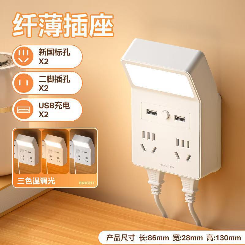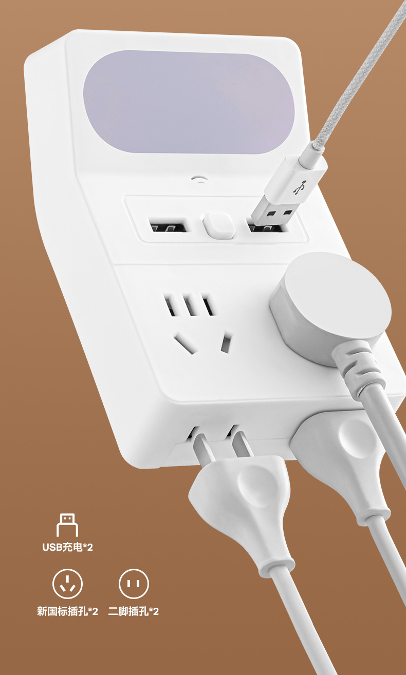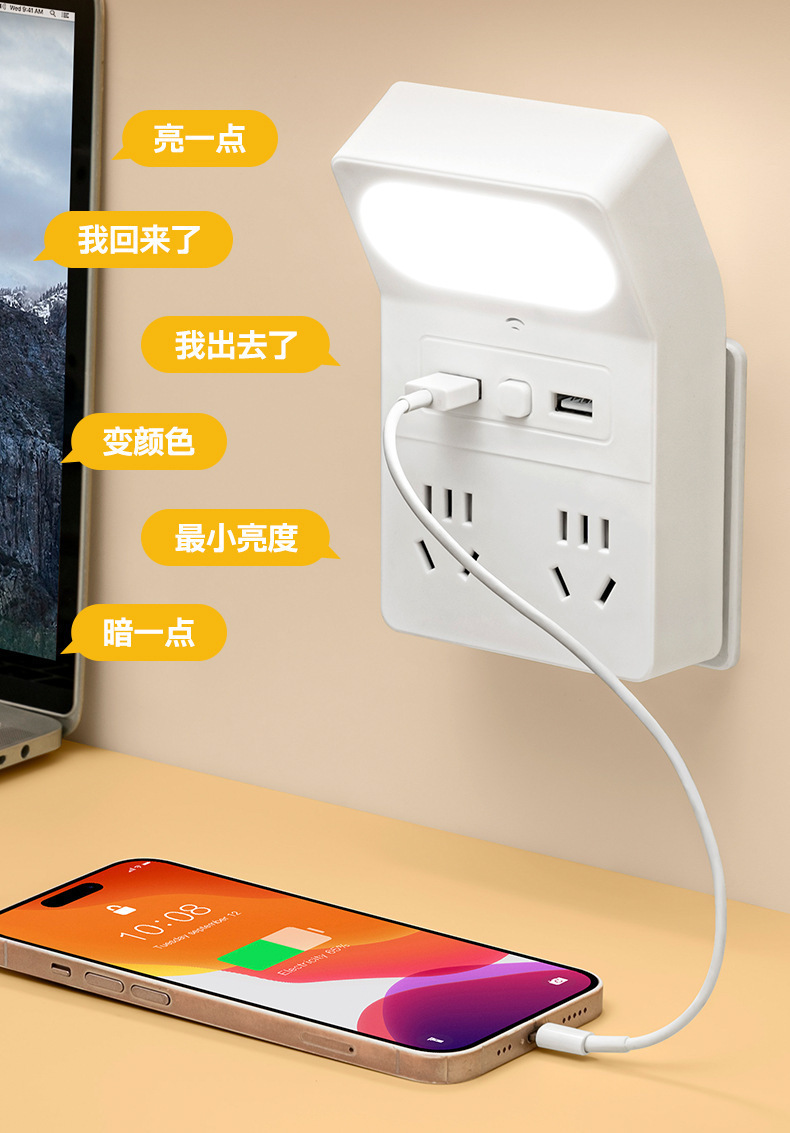 严选USB智能声控三色灯转换器 一转四14孔插座插排家用学习宿舍护眼学习灯床头灯LED灯
