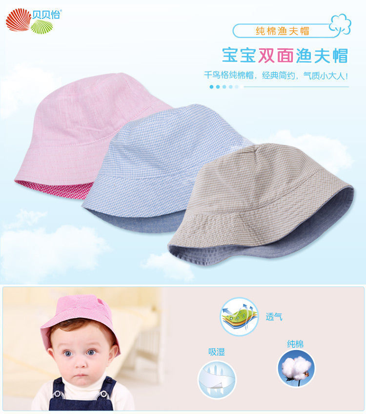 贝贝怡婴儿帽子男女宝宝渔夫帽春夏季薄款透气儿童防晒洋气遮阳帽141P050