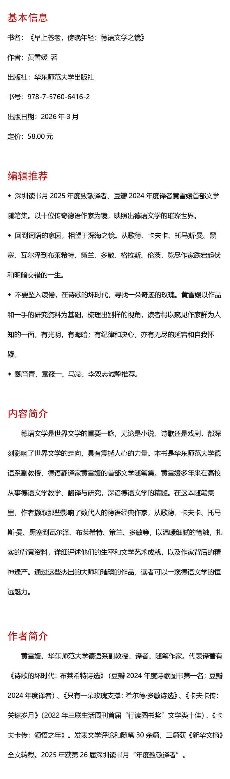 【预售】早上苍老 傍晚年轻 德语文学之镜 豆瓣2024年度译者黄雪媛首部文学随笔集