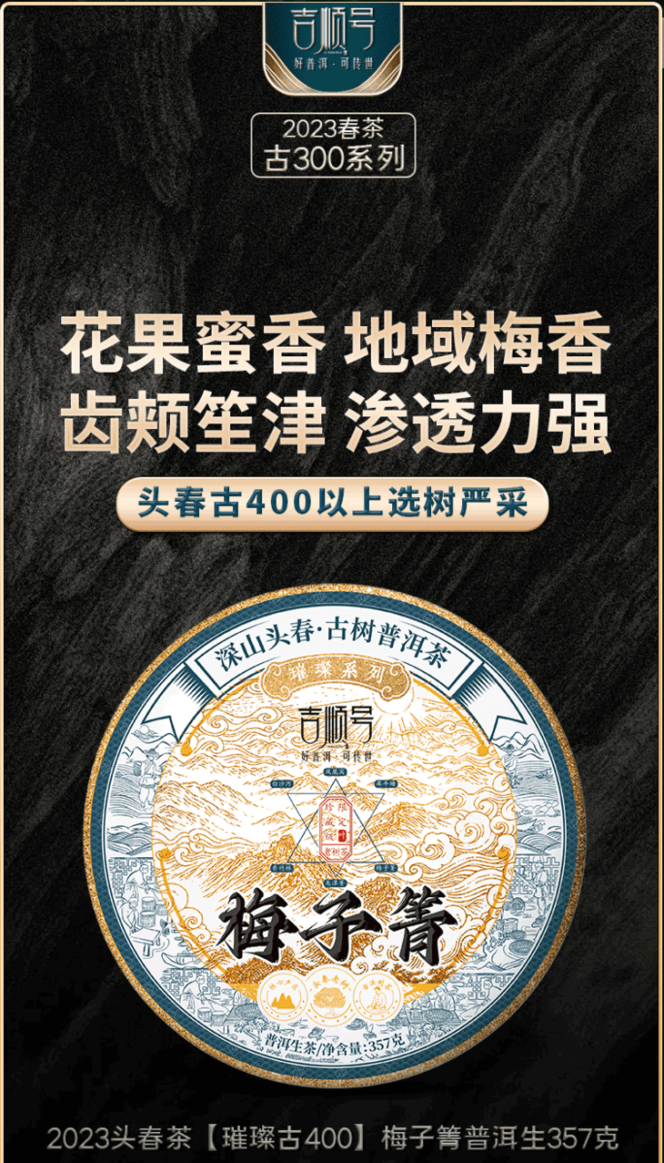 2023春茶 吉顺号古400临沧梅子箐普洱茶生茶饼茶叶357g