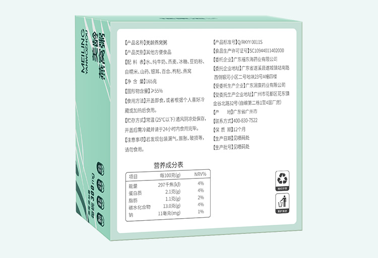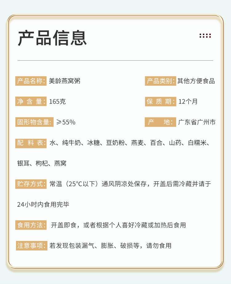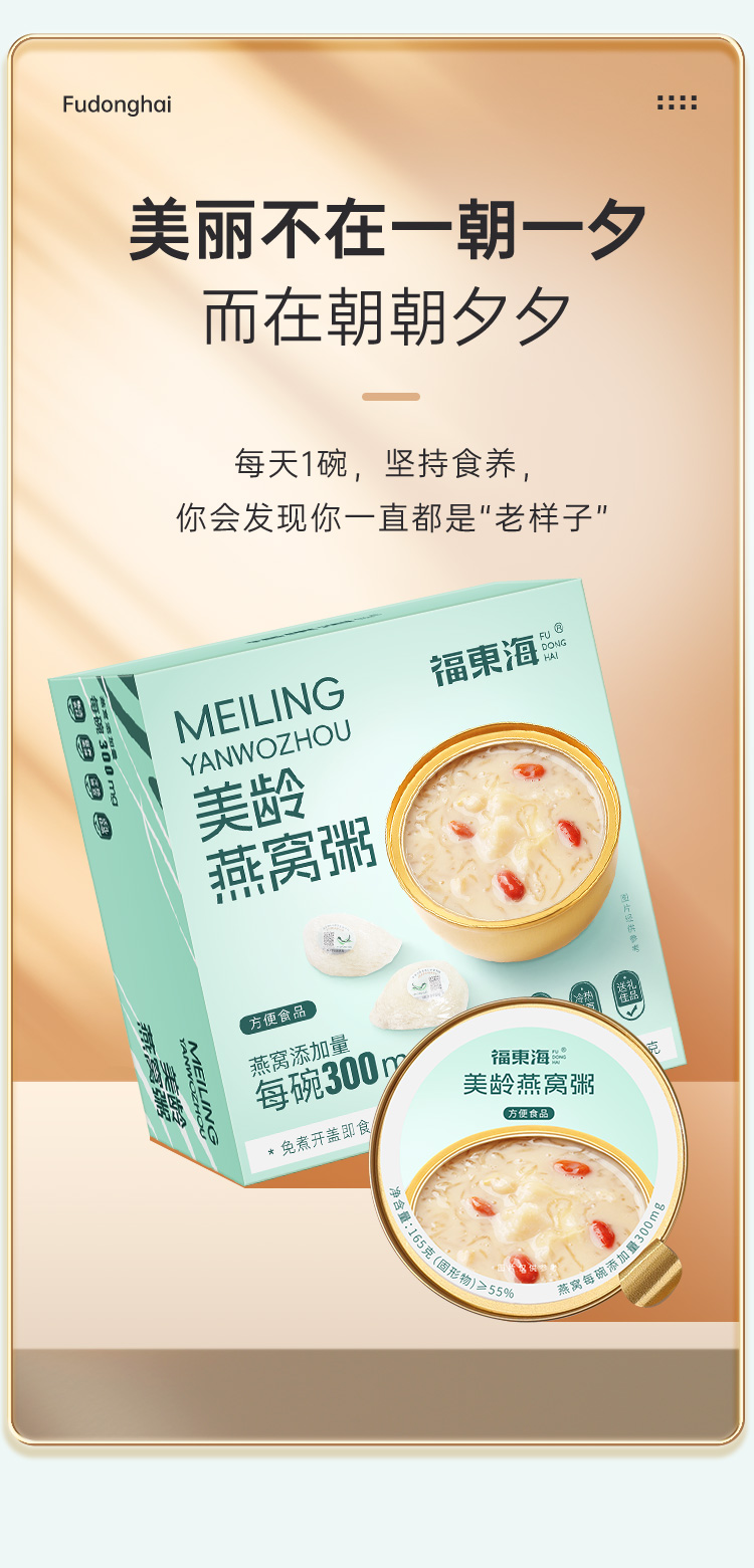 福东海 美龄燕窝粥165g/盒 速食早餐粥 滋补营养粥 美龄燕窝粥165克/盒