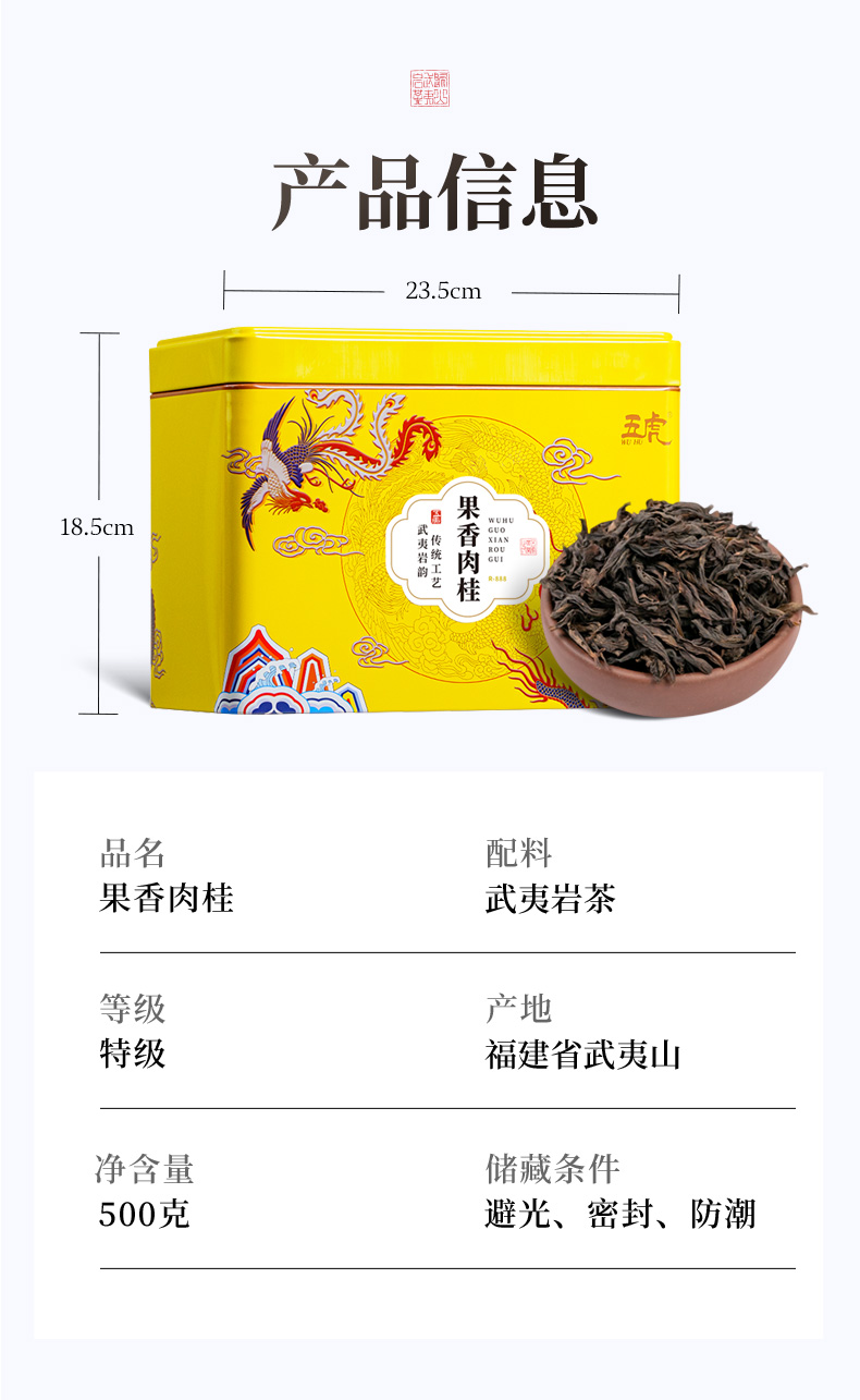 【年货礼盒】茶叶 果香肉桂 乌龙茶 武夷岩茶 茶叶礼盒 茶饮 五虎 500g